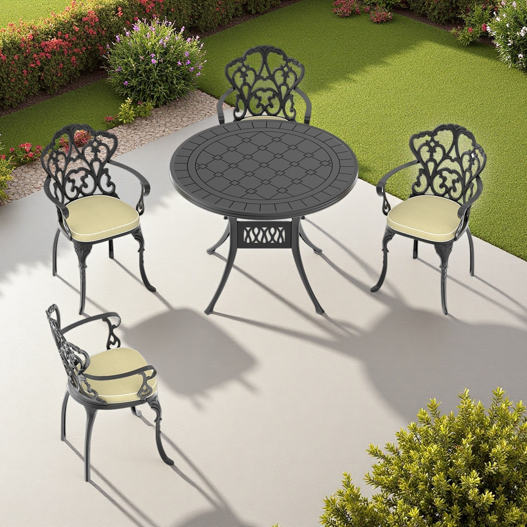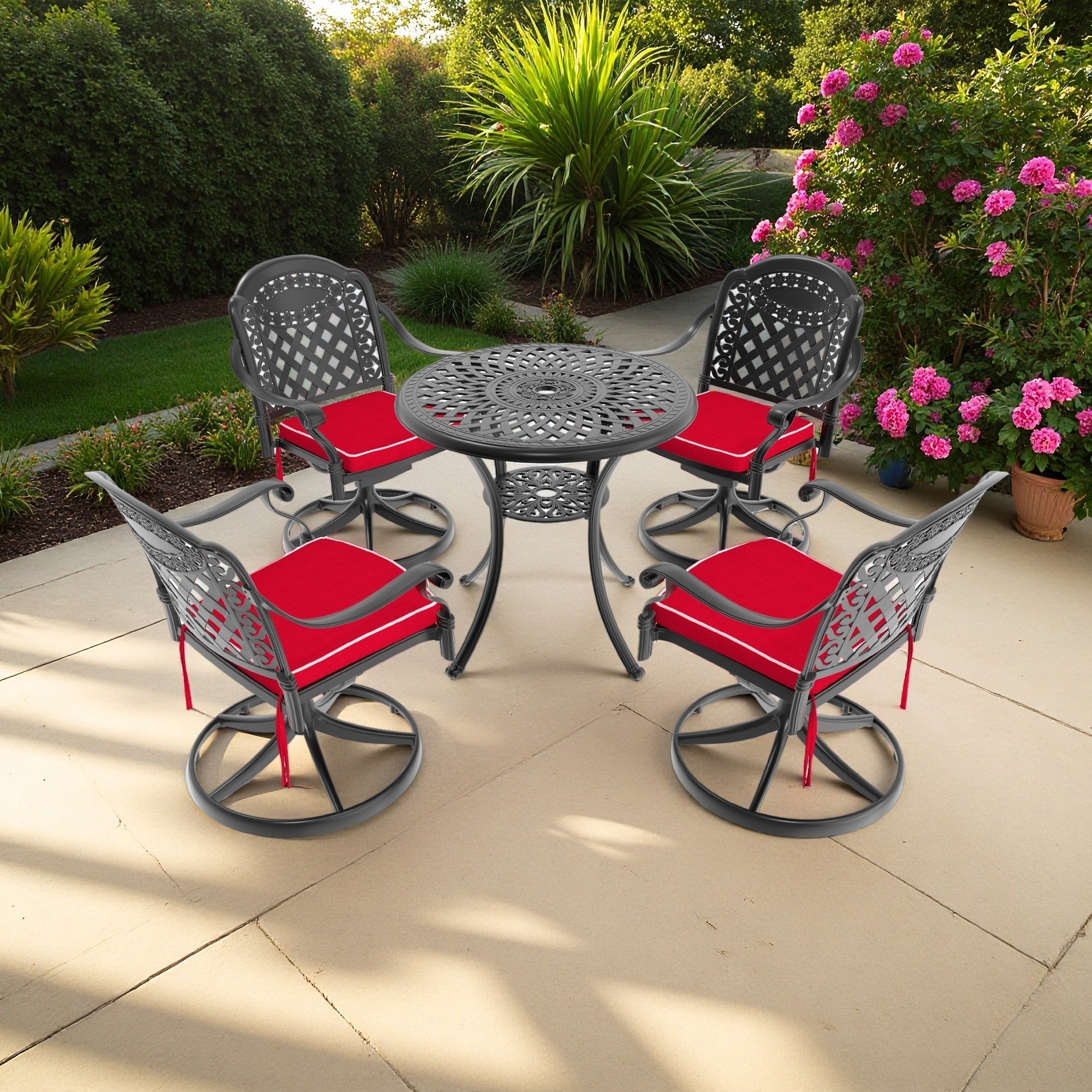 5-Piece Outdoor Aluminum Dining Set with Round Table, Umbrella Hole and 4 Swivel Chairs