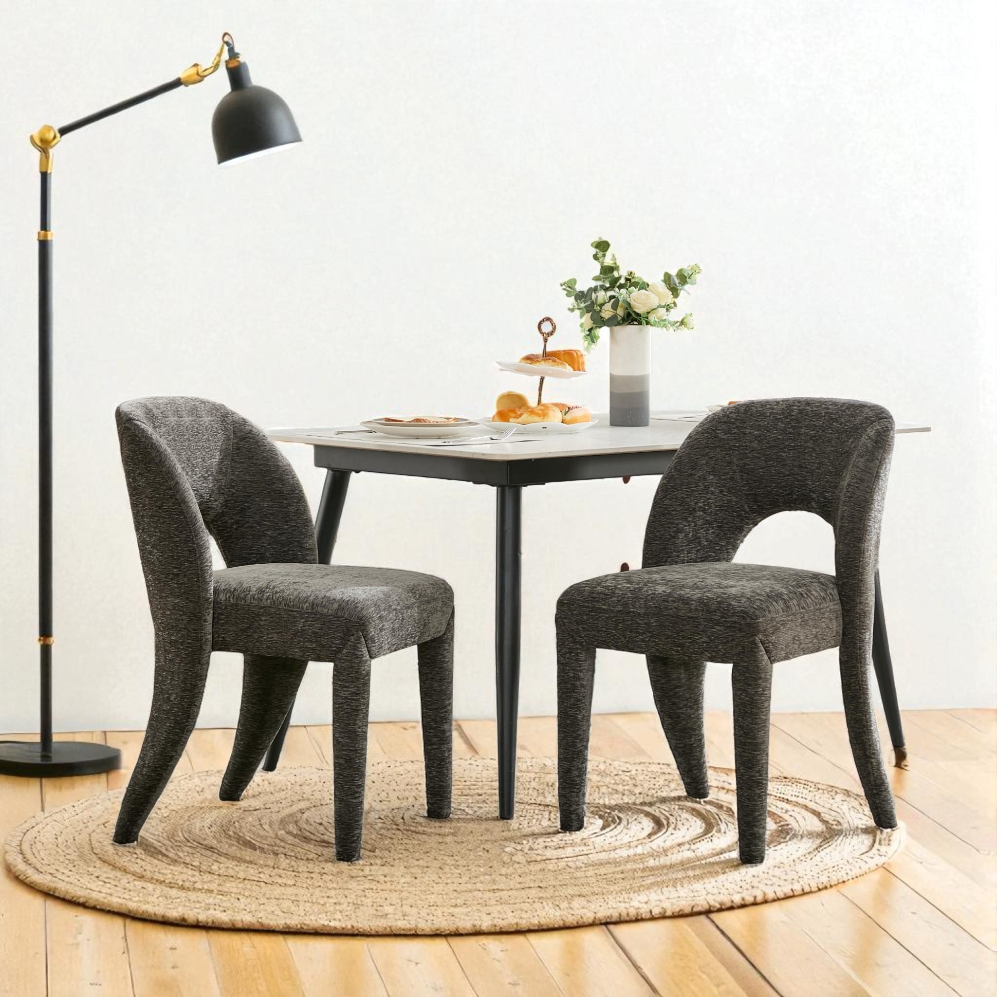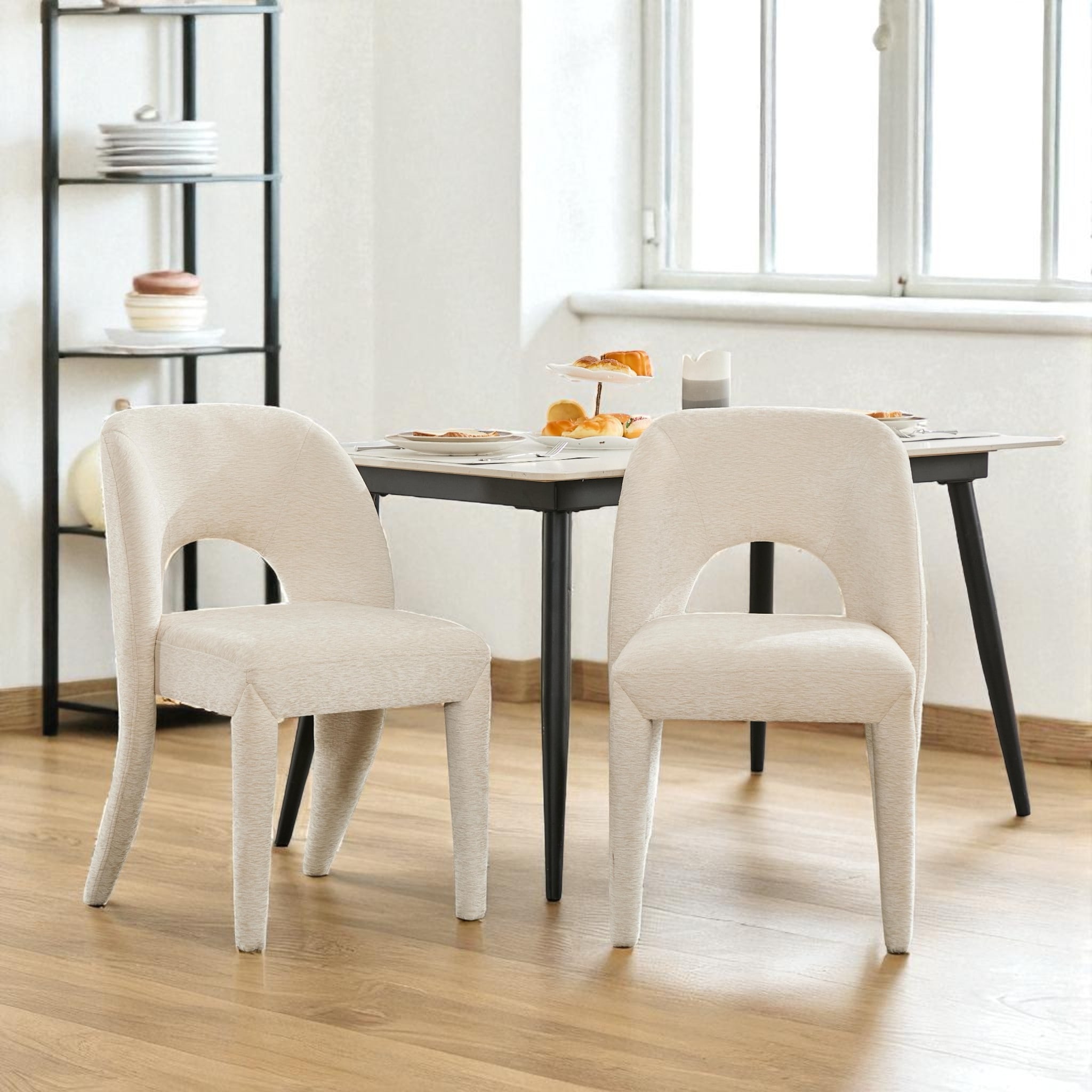 Set of 2 Chenille Dining Chairs with Hollowed-Out Backrest, Sponge Cushion and Iron Frame, Accent Chairs for Kitchen