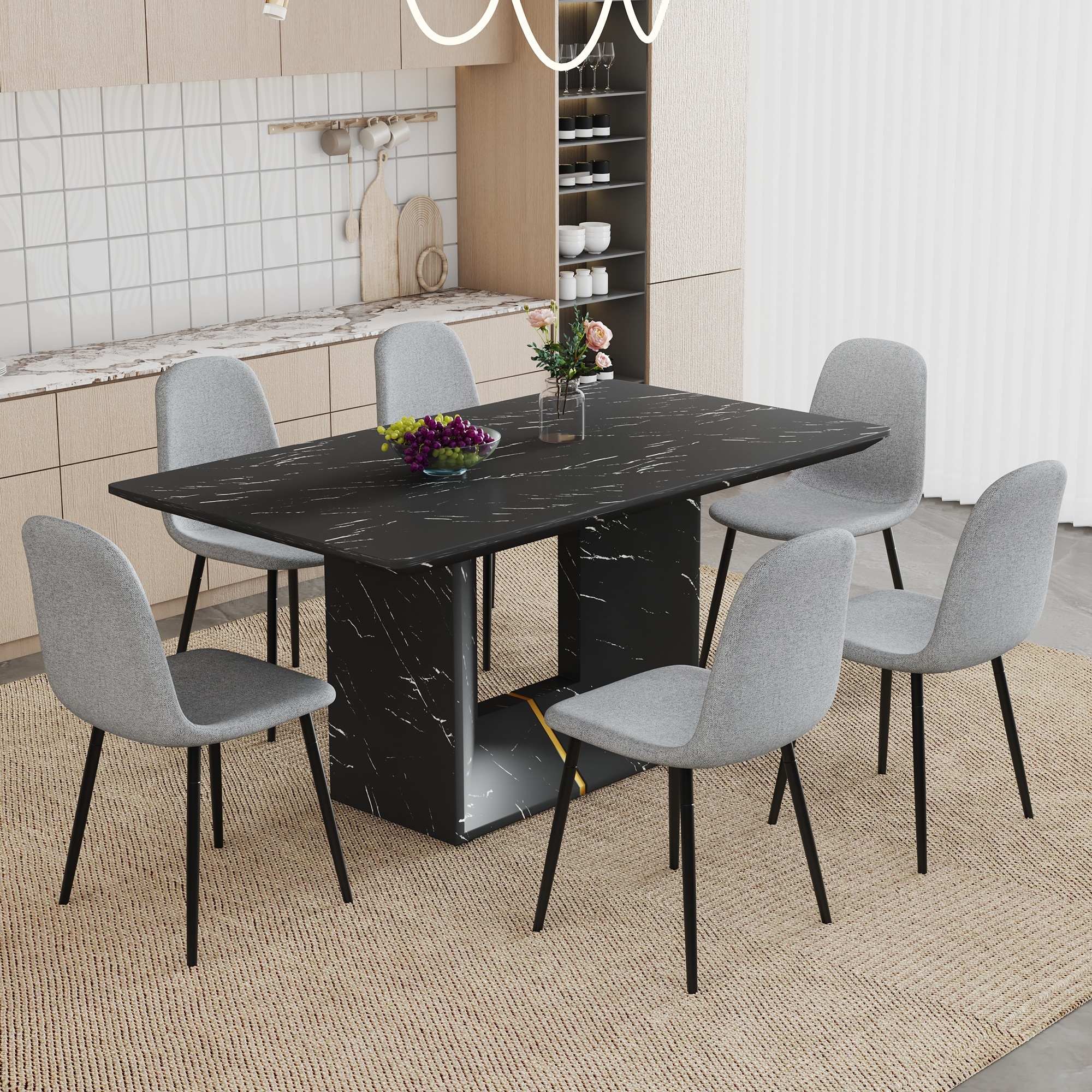 Kitchen Table Chairs Set for 7, Extendable Dining Table Set with Wooden Rectangular Kitchen Table & 6 Upholstered Chairs