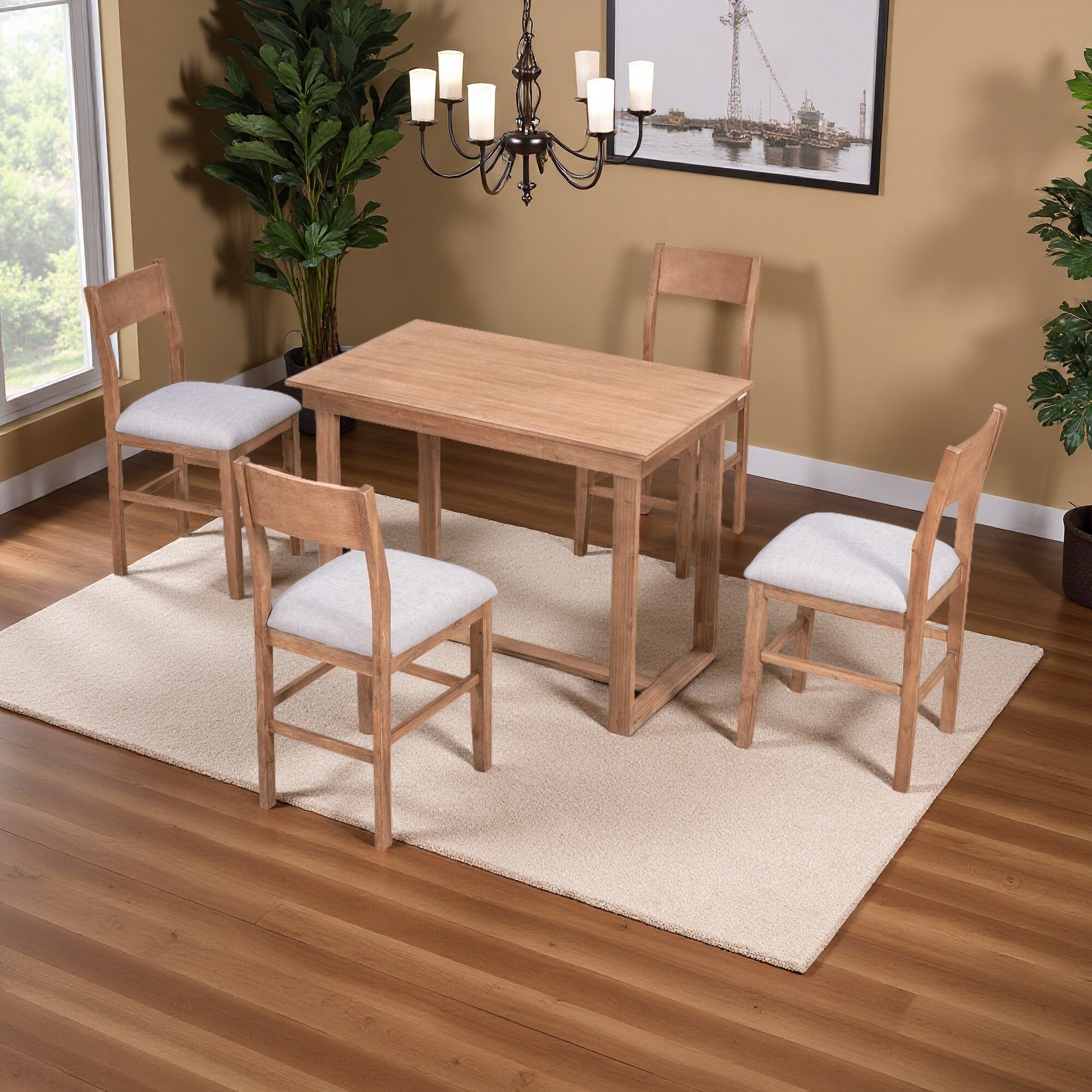 5-Piece Natural Oak Finish Solid Wood Top - Dining Room Set - Seats 4