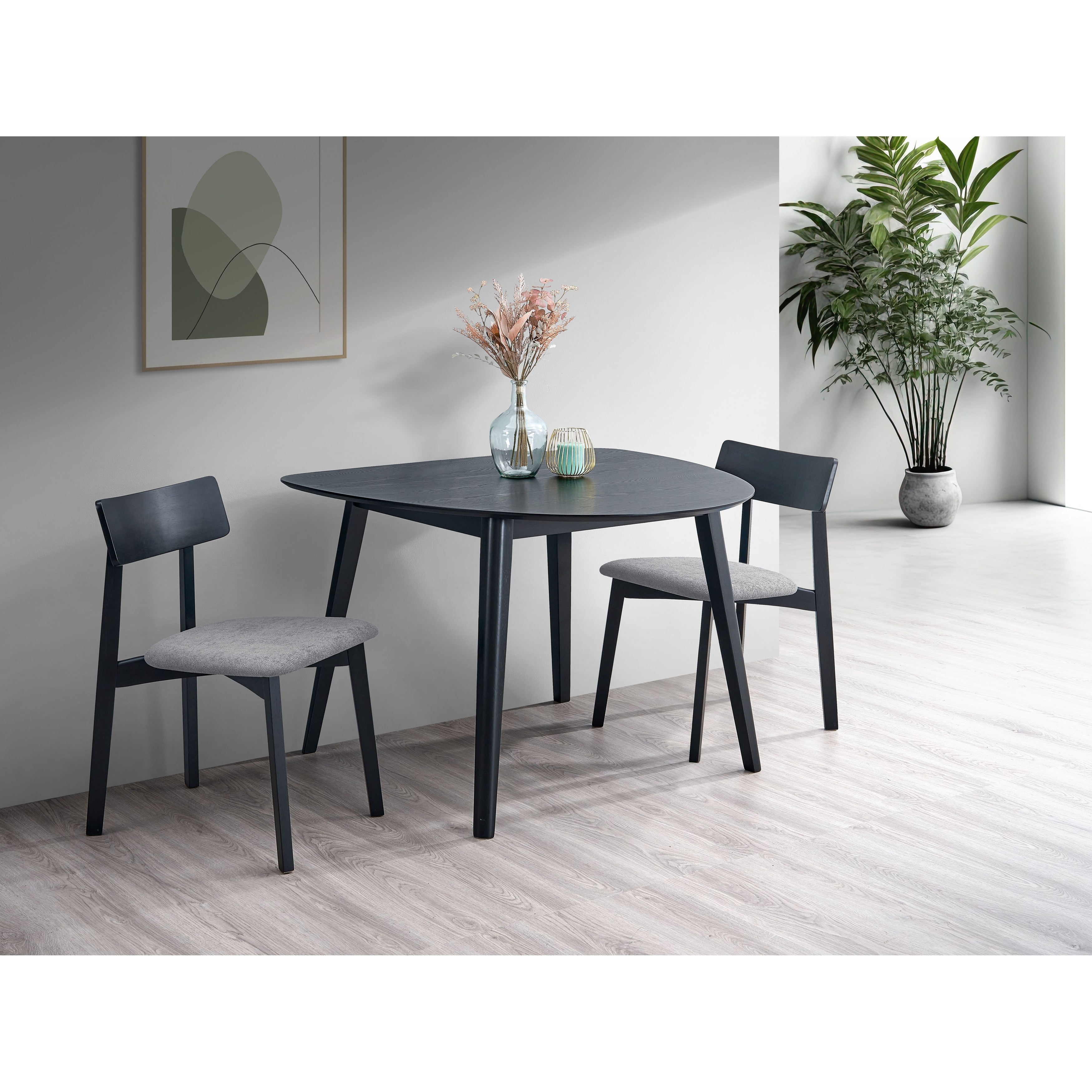 Compact 3-Piece Dining Set, Black Wood Table and Two Gray Upholstered Chairs