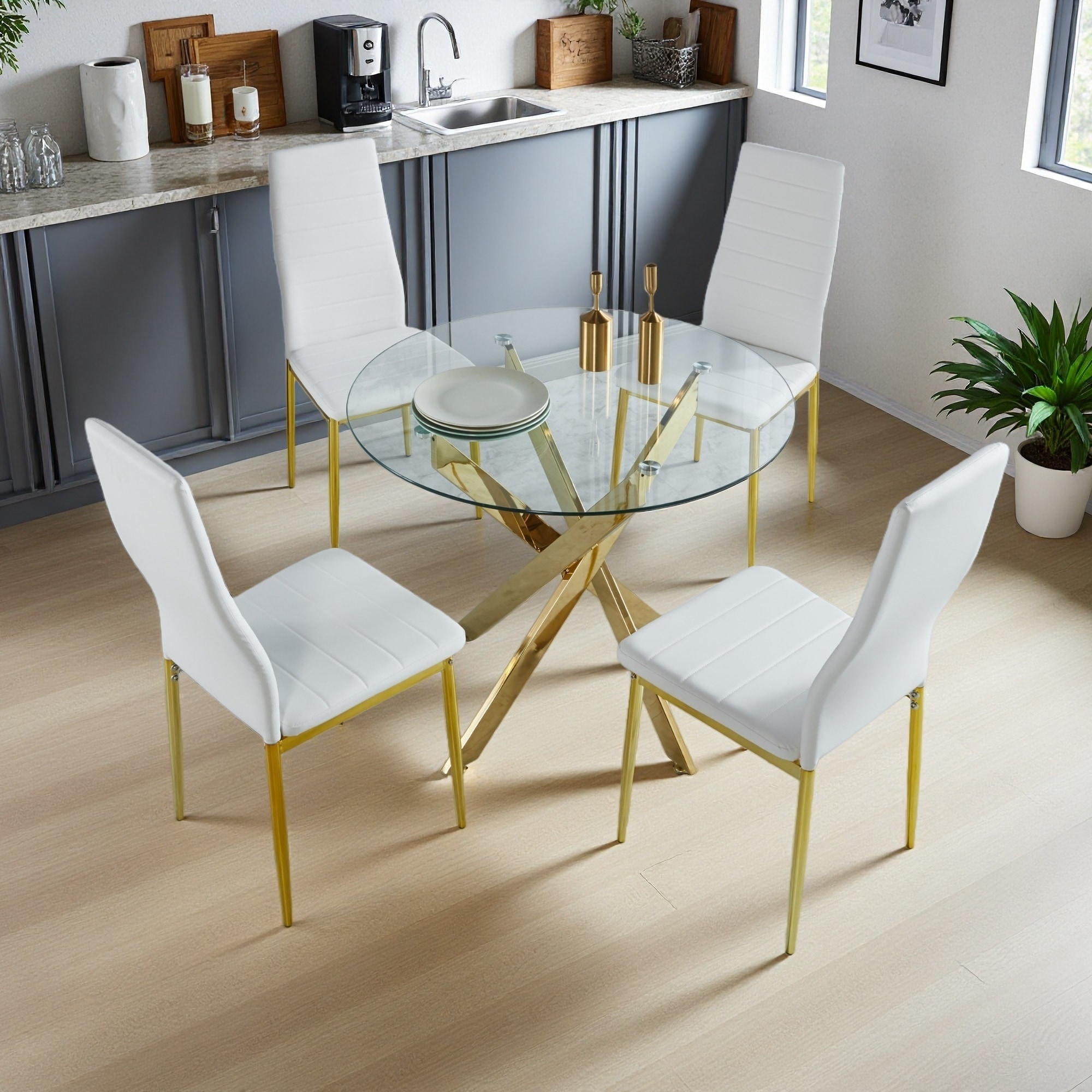 Set of 5 Dining Set with Metal Pedestal Legs, Glass Table Top Dining Table, Multi-Functional End Table & Leisure Coffee Table