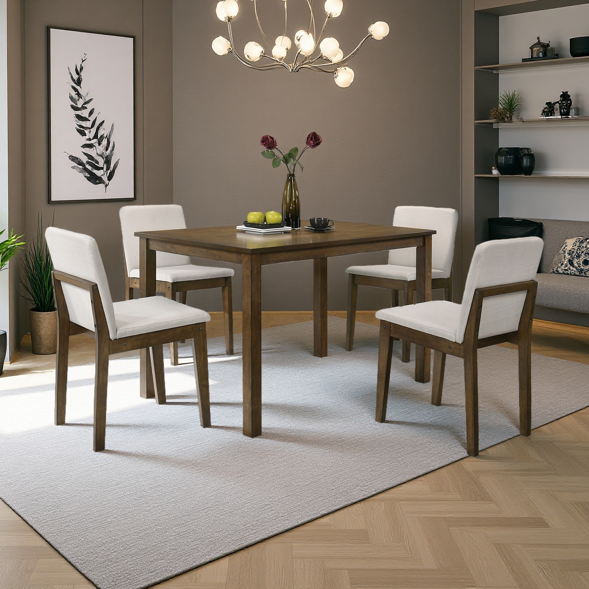 Set of 5 Dining Table 47"L Rubberwood Veneer, Burlap Fabric Cushioned Seats, Transitional Dining Set with 4 Chairs for Kitchen