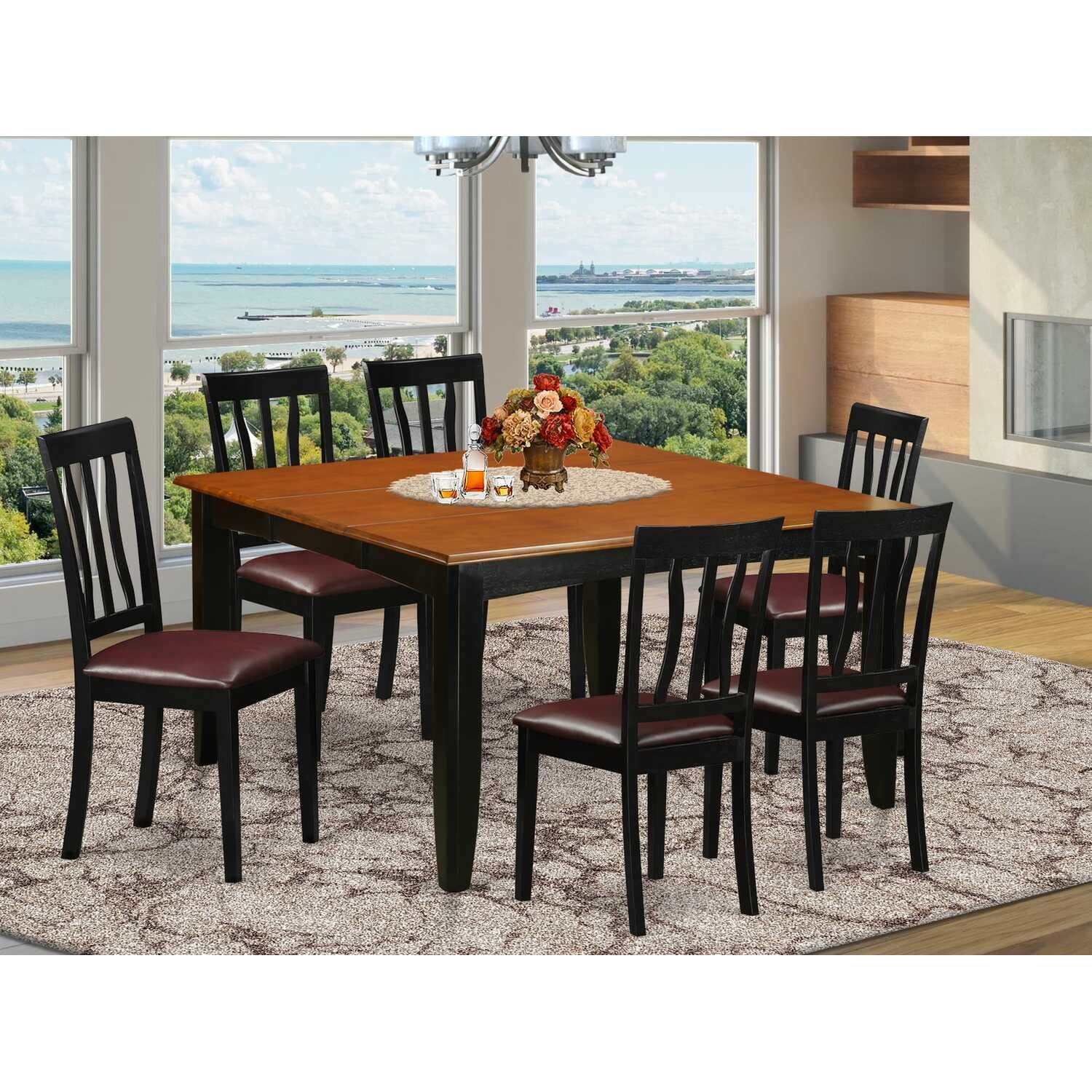 HomeStock 7-Piece Square Black & Cherry Finish Solid Wood Top Dining Table with 6-Chairs