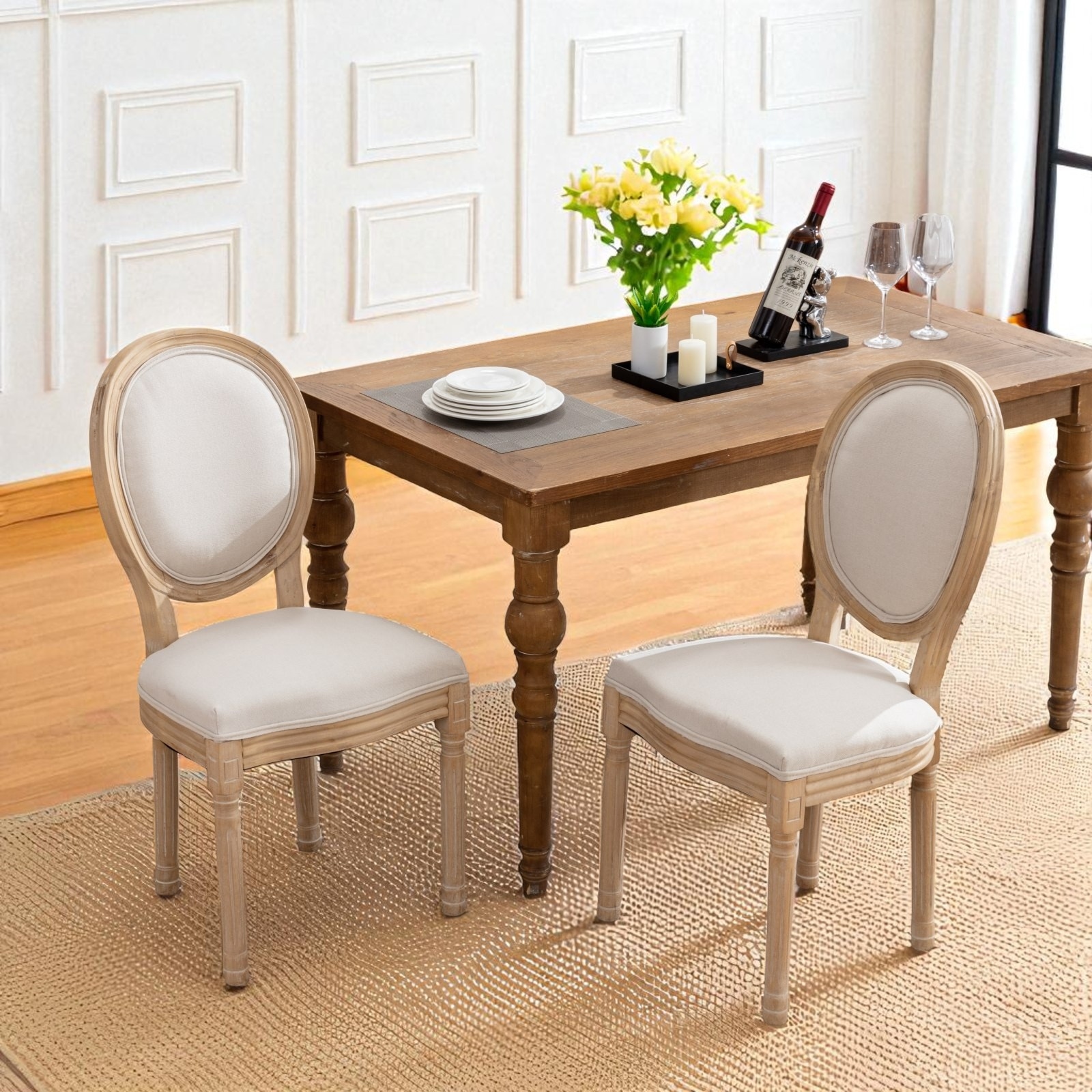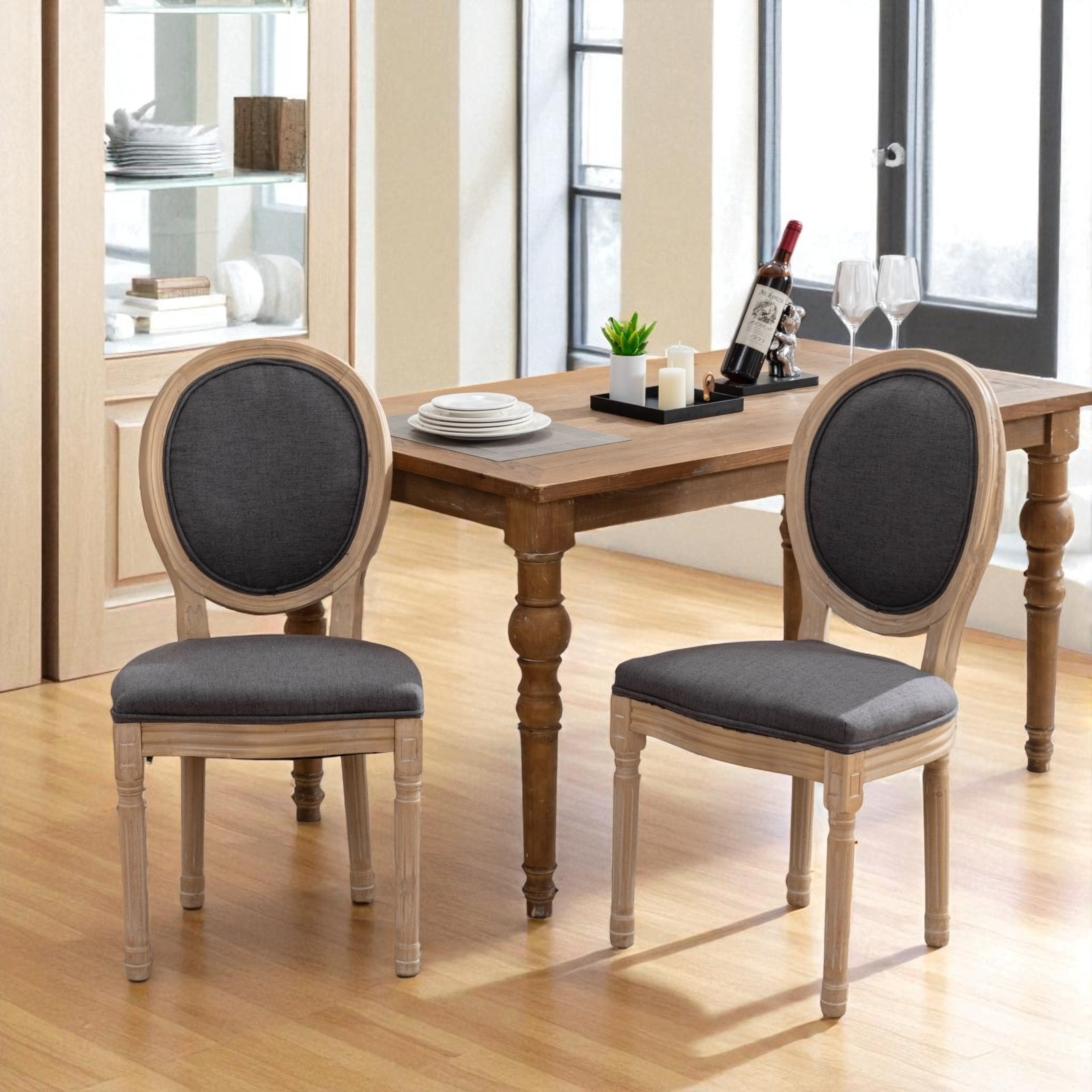 Set of 2 Dining Chairs with Solid Wood Frame, Linen Upholstered Back and Seat, Foam Cushion, Accent Chairs