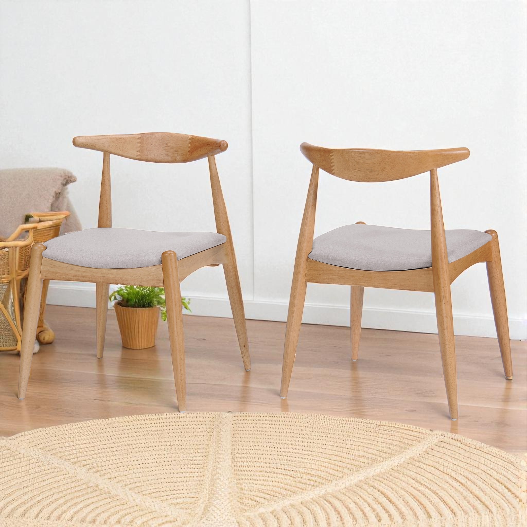 Set of 2 Modern Rubberwood Dining Chairs with Upholstered Cushions, Ergonomic Arched Backrest for Kitchen & Dining Room