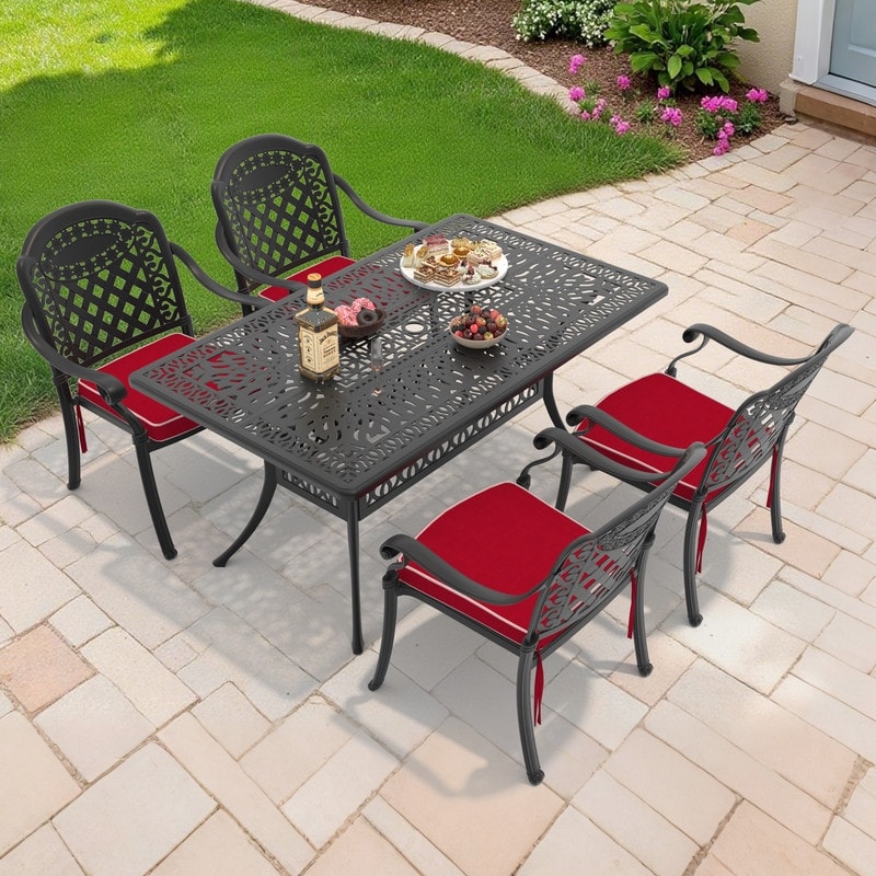 5-Piece Cast Aluminum Outdoor Dining Set with Cushions