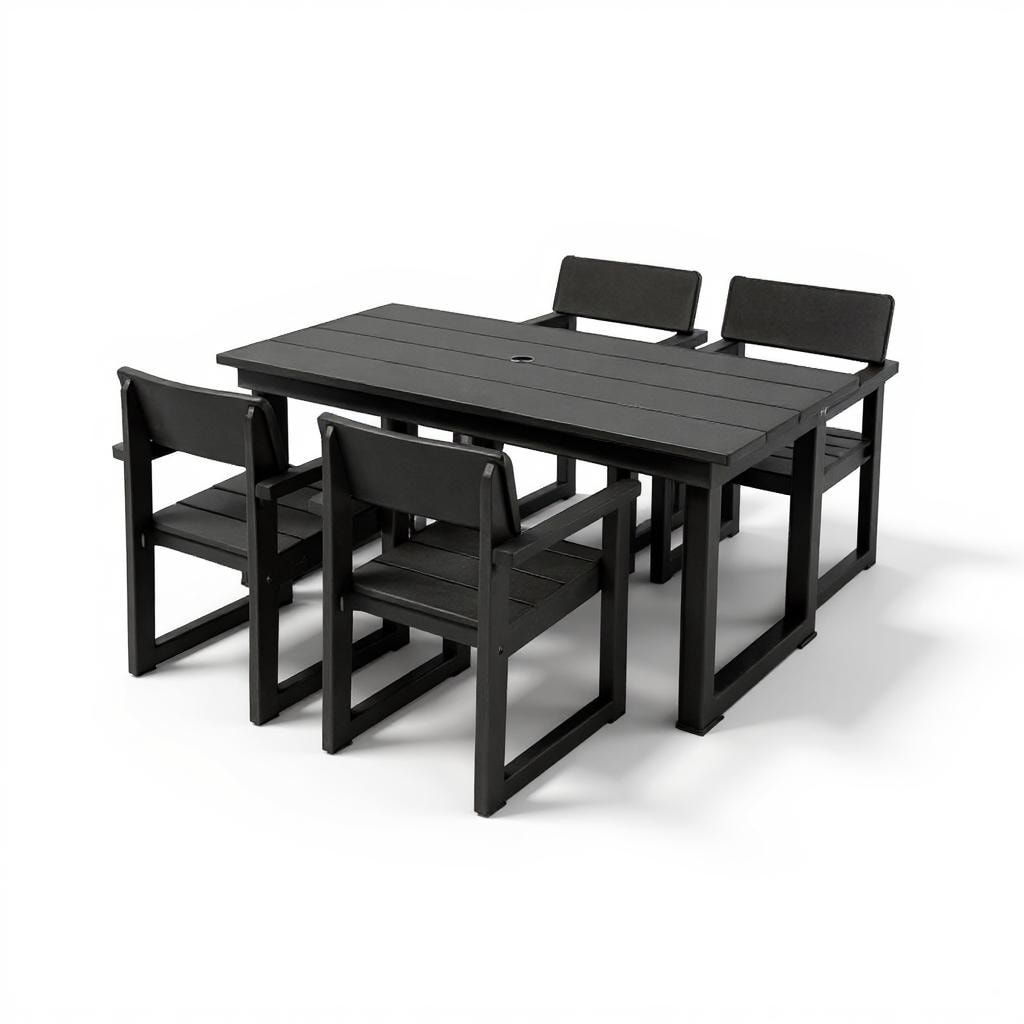Outdoor Black Dining Set with Umbrella Hole & 4 Side Chairs, 5-Piece Patio Dining Set with Rectangular Table