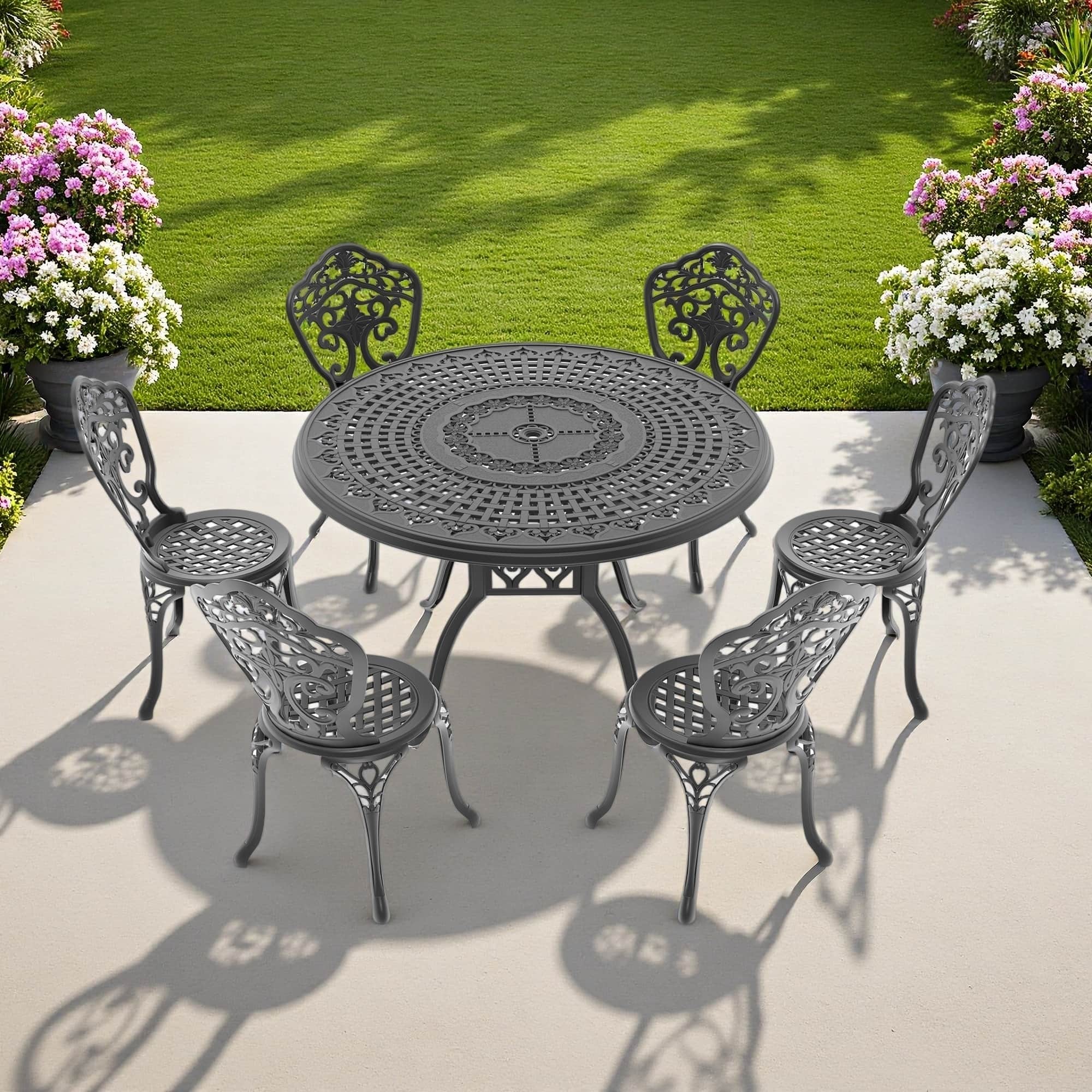 7-Piece Outdoor Aluminum Dining Set with Round Table, Umbrella Hole and 6 Chairs