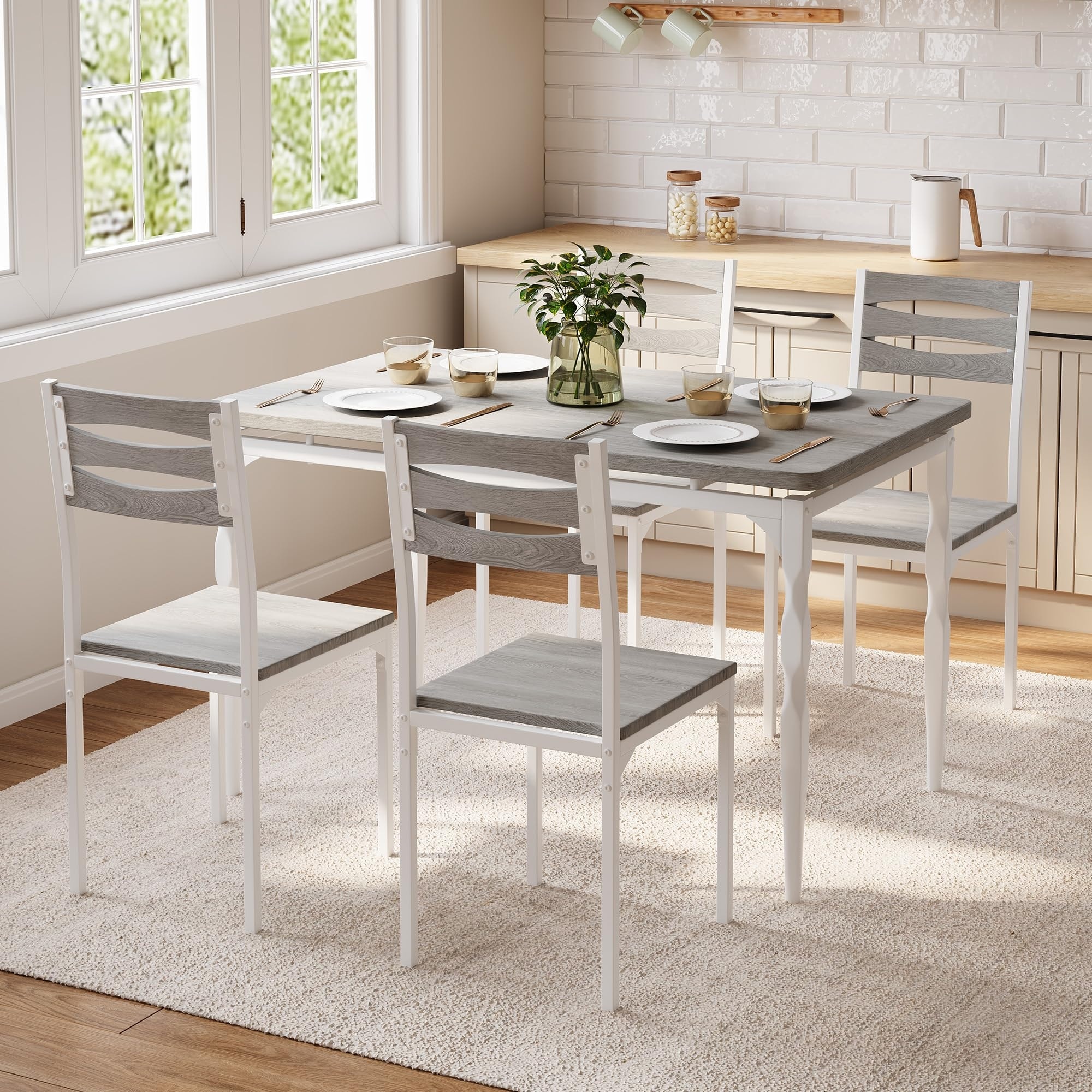 5-Piece Industrial Dining Table Set for 4, Space-Saving Kitchen Table and Chairs for Apartment