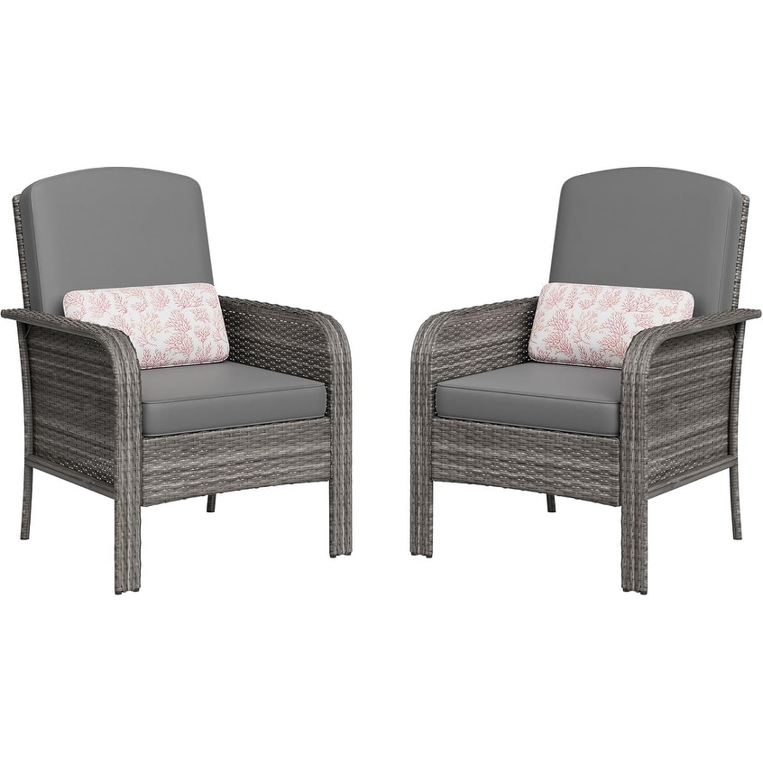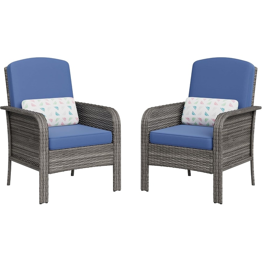 2-Piece Outdoor Patio Furniture Set, Rattan Lounge Chairs with High Back and Thick Cushions