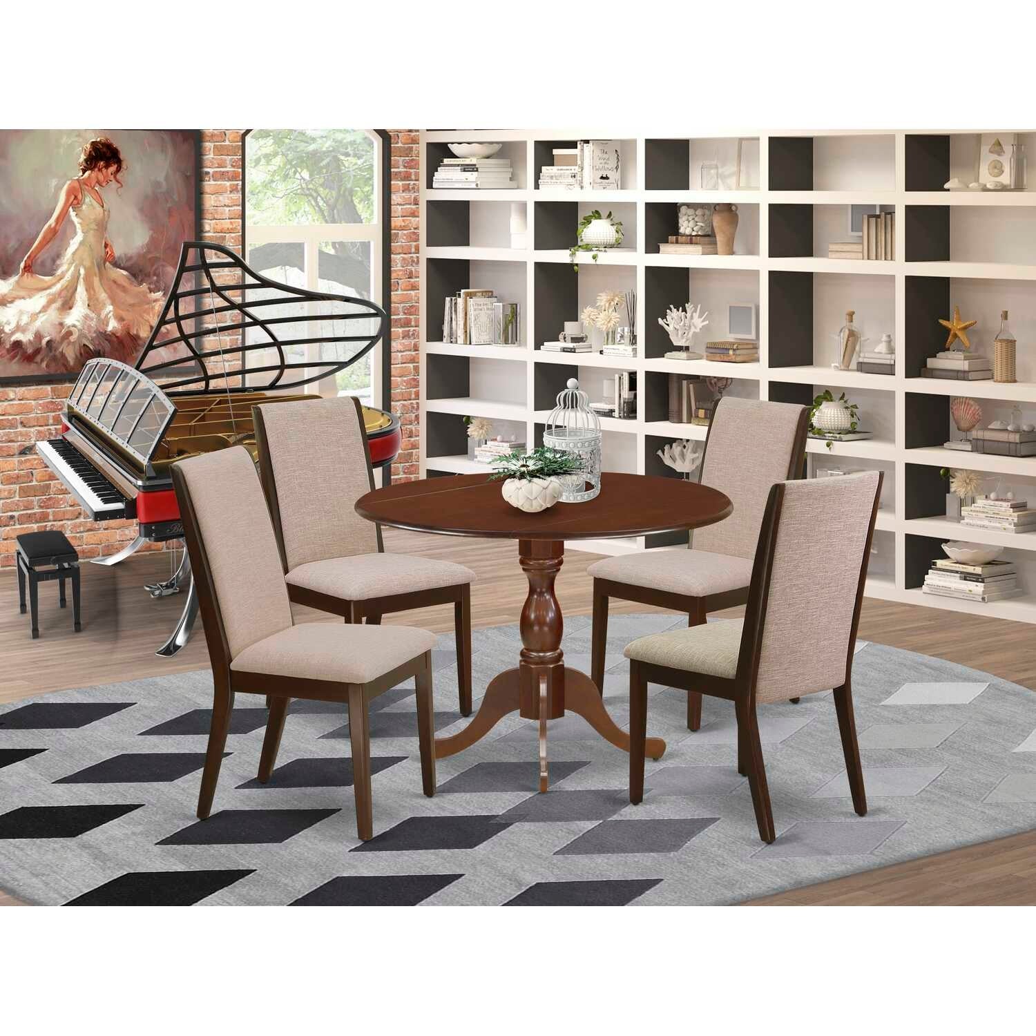 HomeStock 5-Pc Linen White Finish Solid Wood Top-Round Dining Room Set with Dropleaf-Seats 4