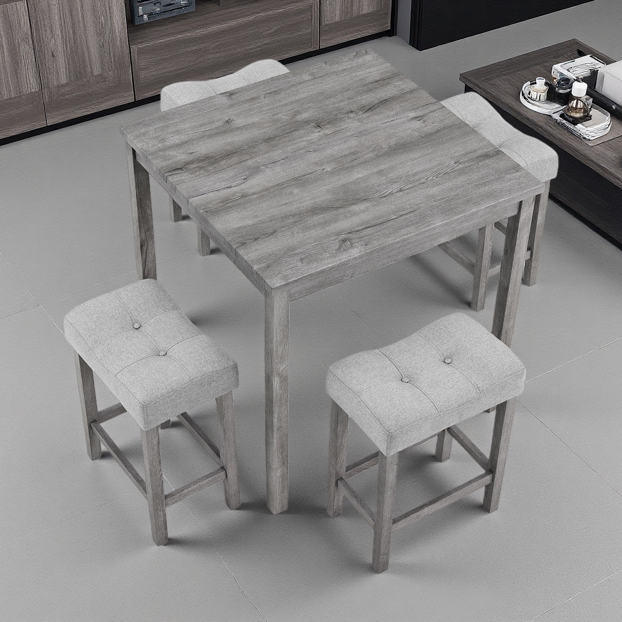 5-Piece Bar Height Dining Set with Bar Table and Ergonomic Stools