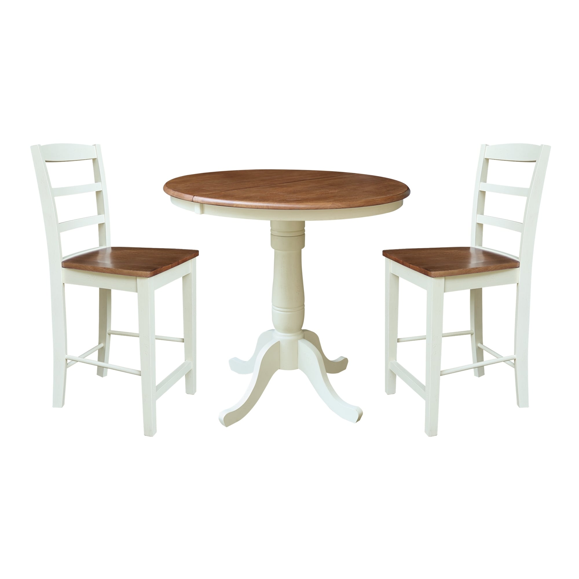 36" Round Top Pedestal Extension Dining Table with 12" Leaf and Stools