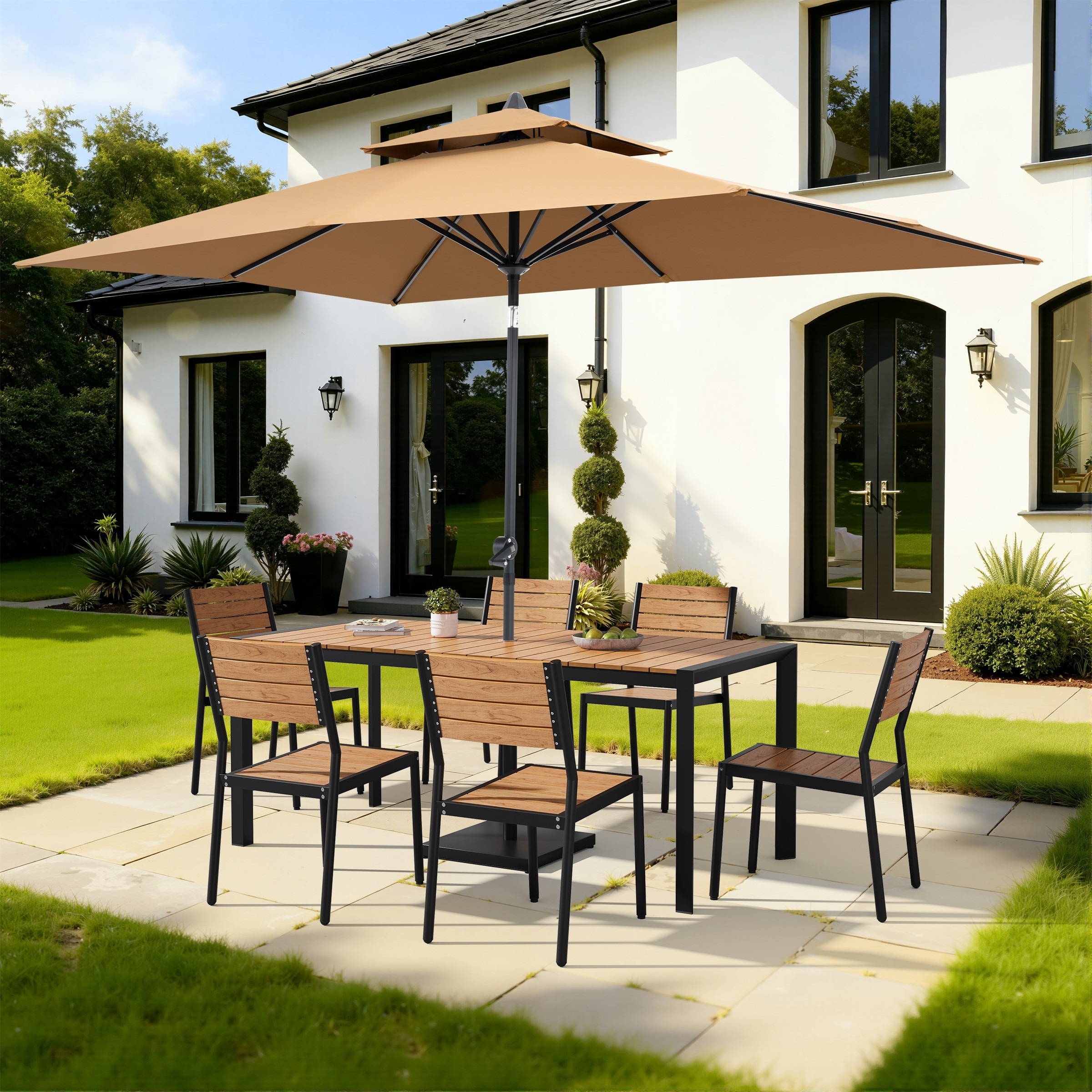 7-Piece Patio Dining Table Set Rectangular Aluminum Outdoor Table with Umbrella Hole Stackable Chairs