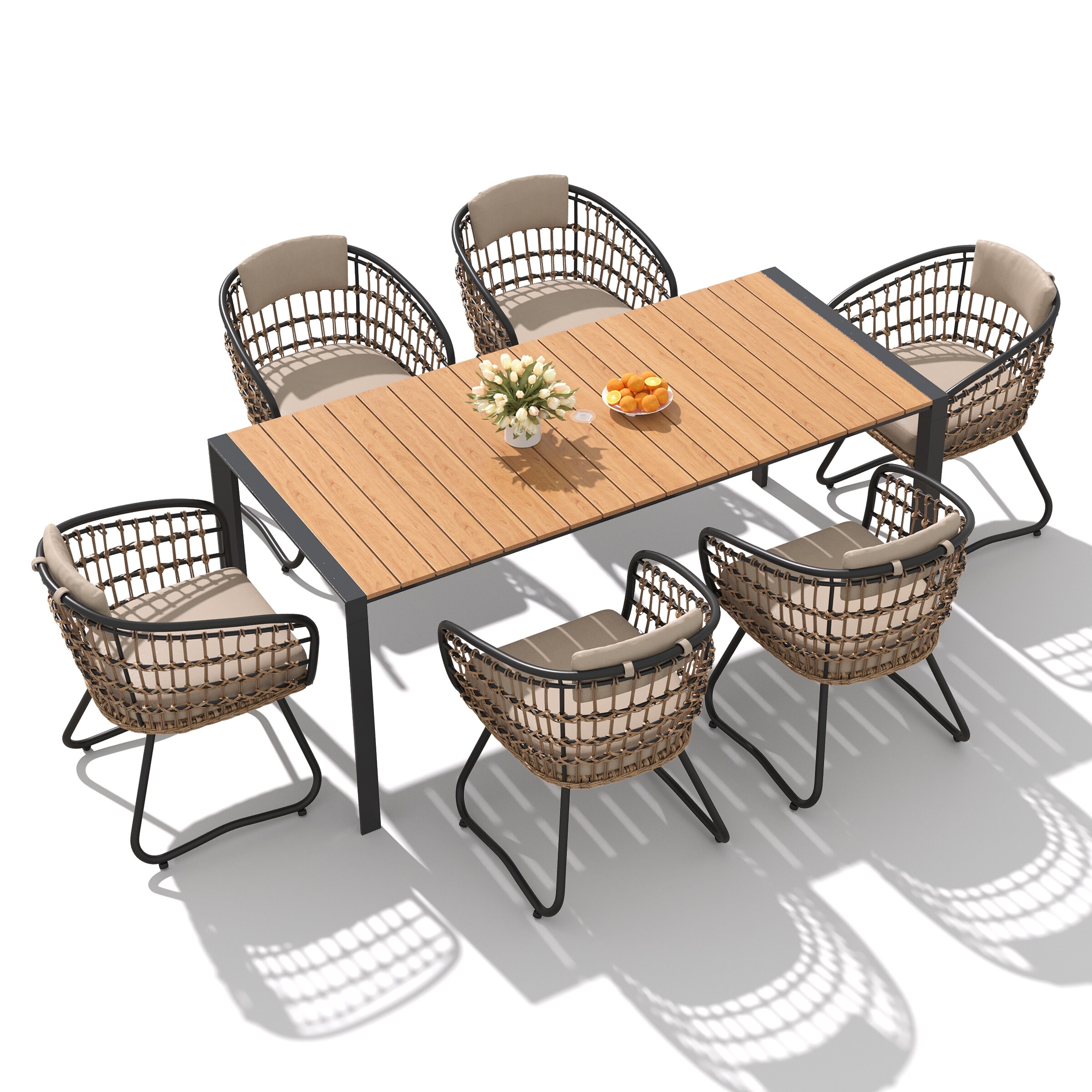 7/9-Piece Outdoor Premium Aluminum Dining Table with Umbrella Hole and PE Rattan Chairs