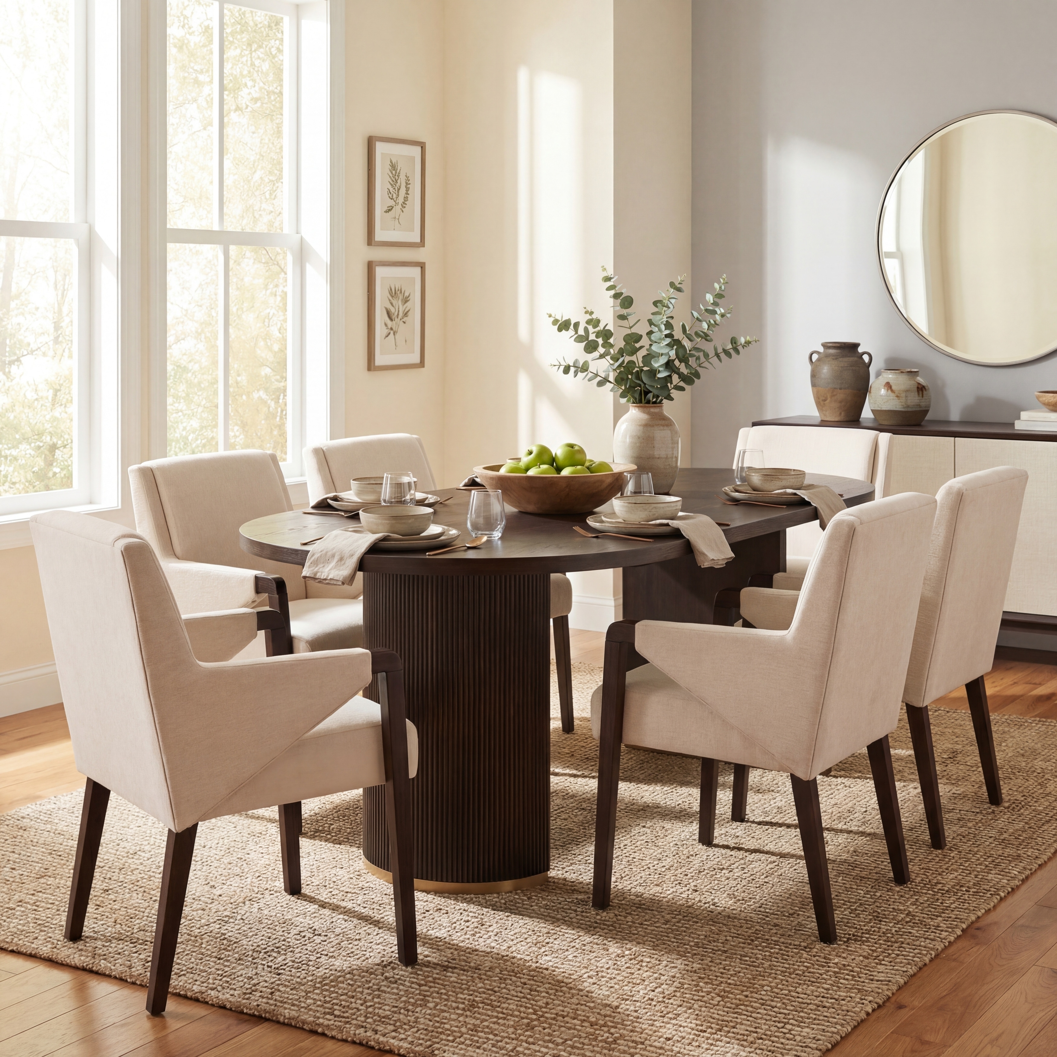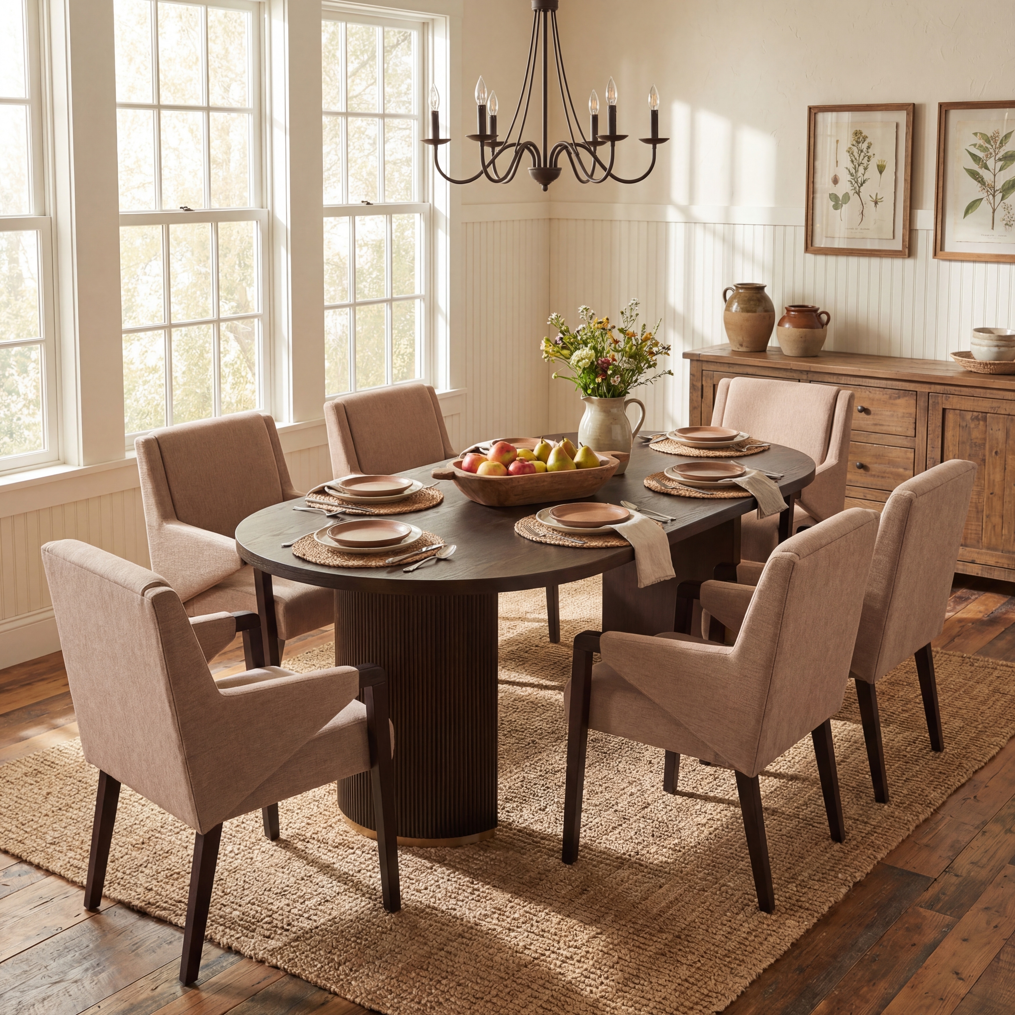 Christopher Knight Home - Modern 7-Piece Dining Wood Top Oval Dining Table Set with Upholstered Dining Chairs