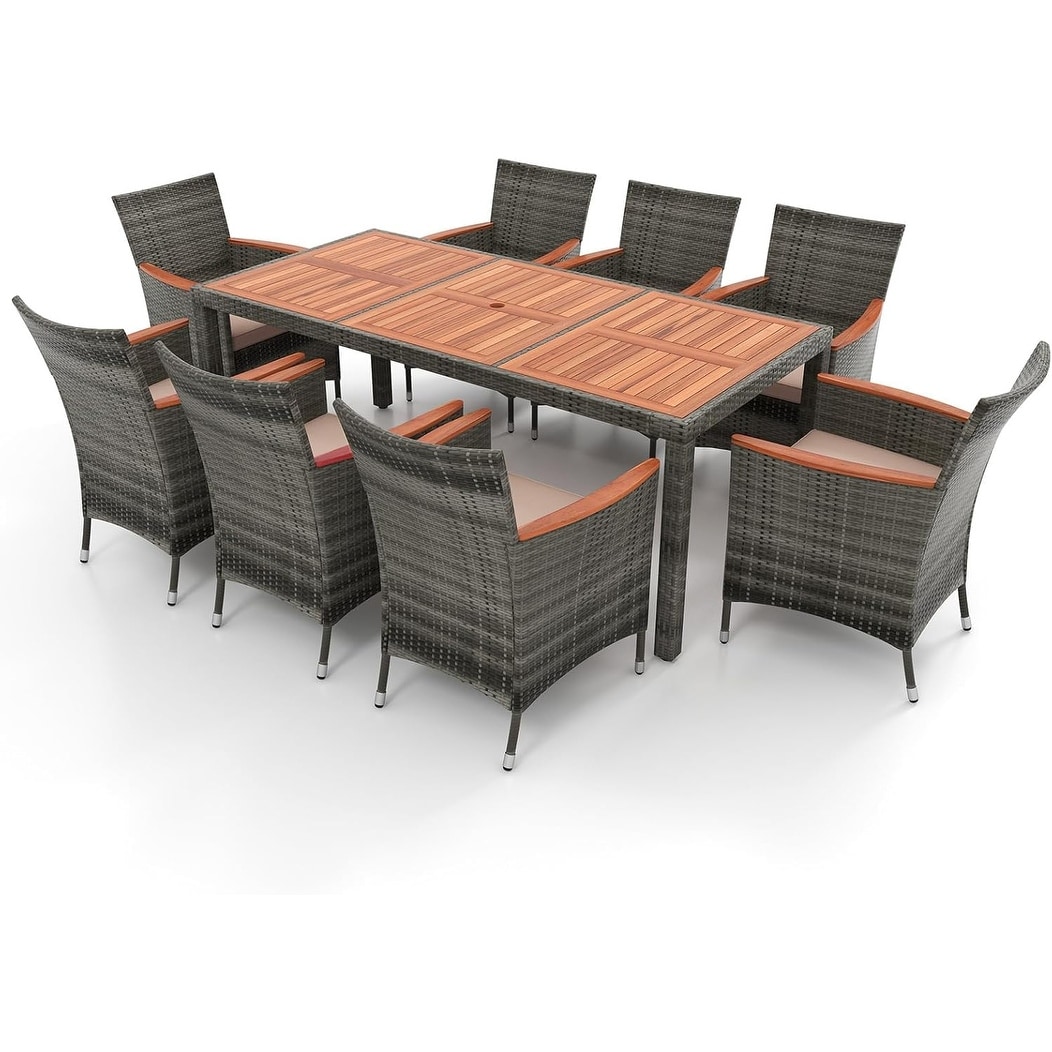 9 PCS Patio Dining Set Wicker Furniture Set with 1 Table & 8 Chairs