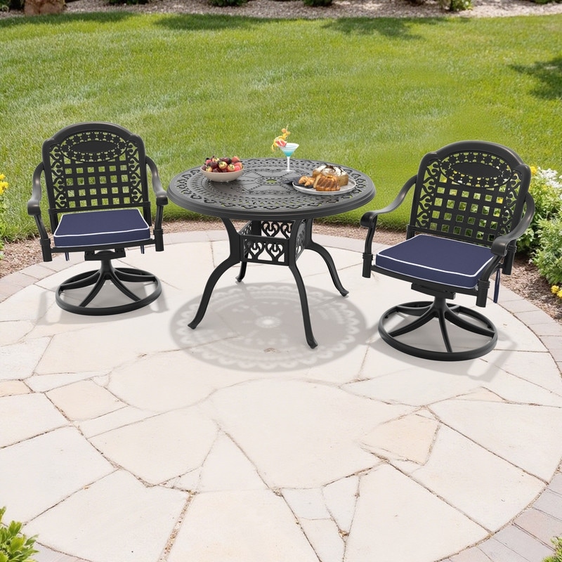 3-Piece Aluminum Round Outdoor Patio Dining Set, 2 Cushioned Swivel Chairs, Table, All-Weather Frames
