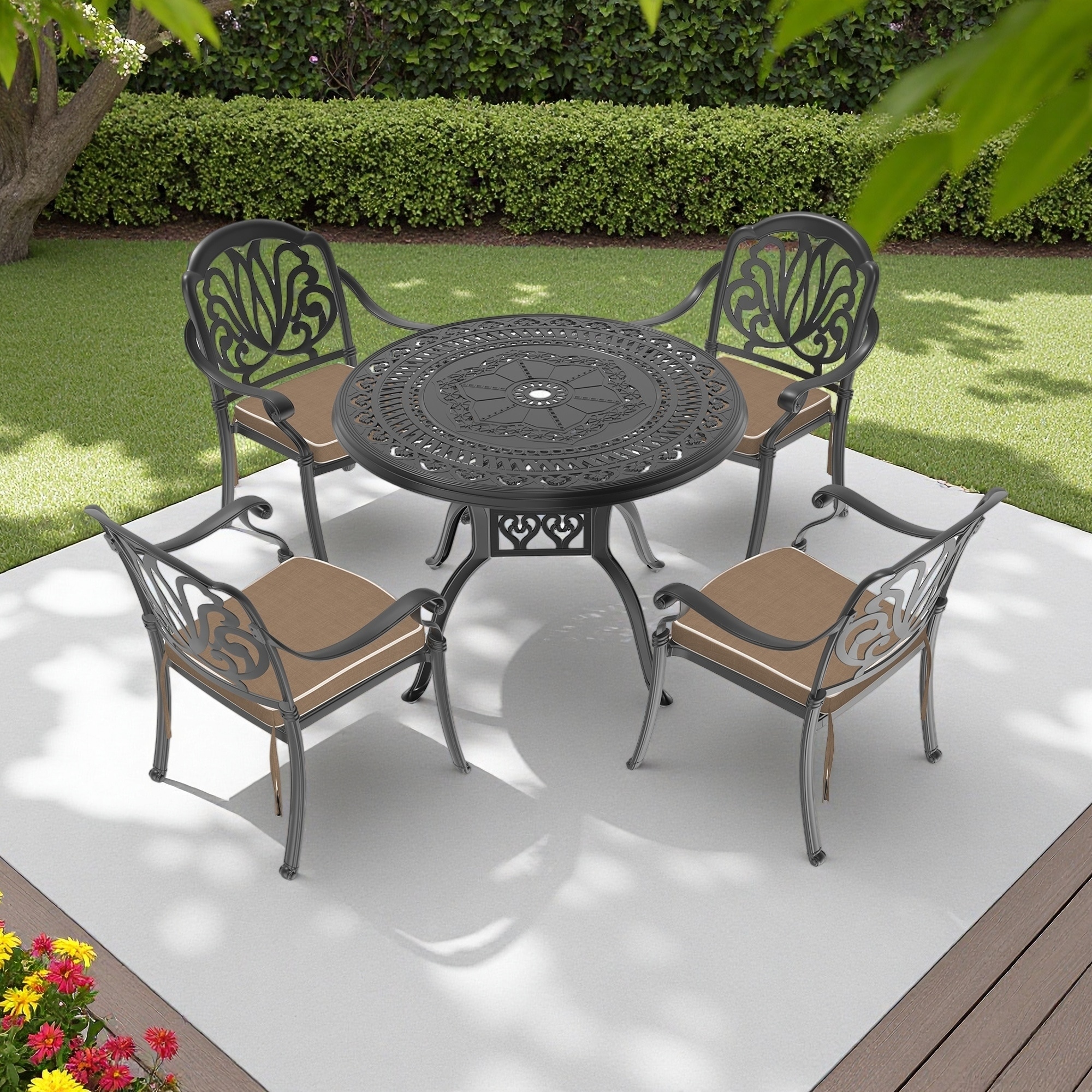 5-Piece Outdoor Patio Aluminum Dining Set with Square Table and 4 Stacking Chairs with Cushions