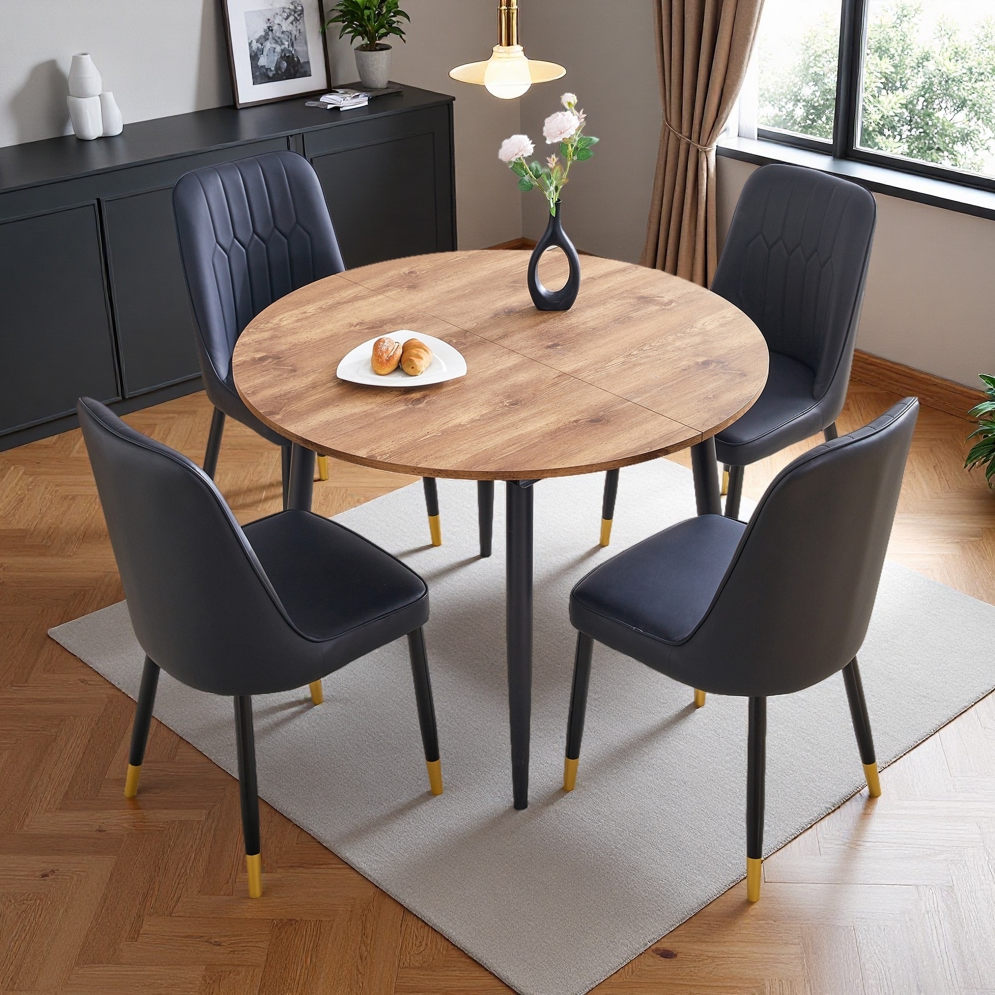 Table and Chair Set, Modern Extendable Wood MDF Dining Set with 4 PU Chairs