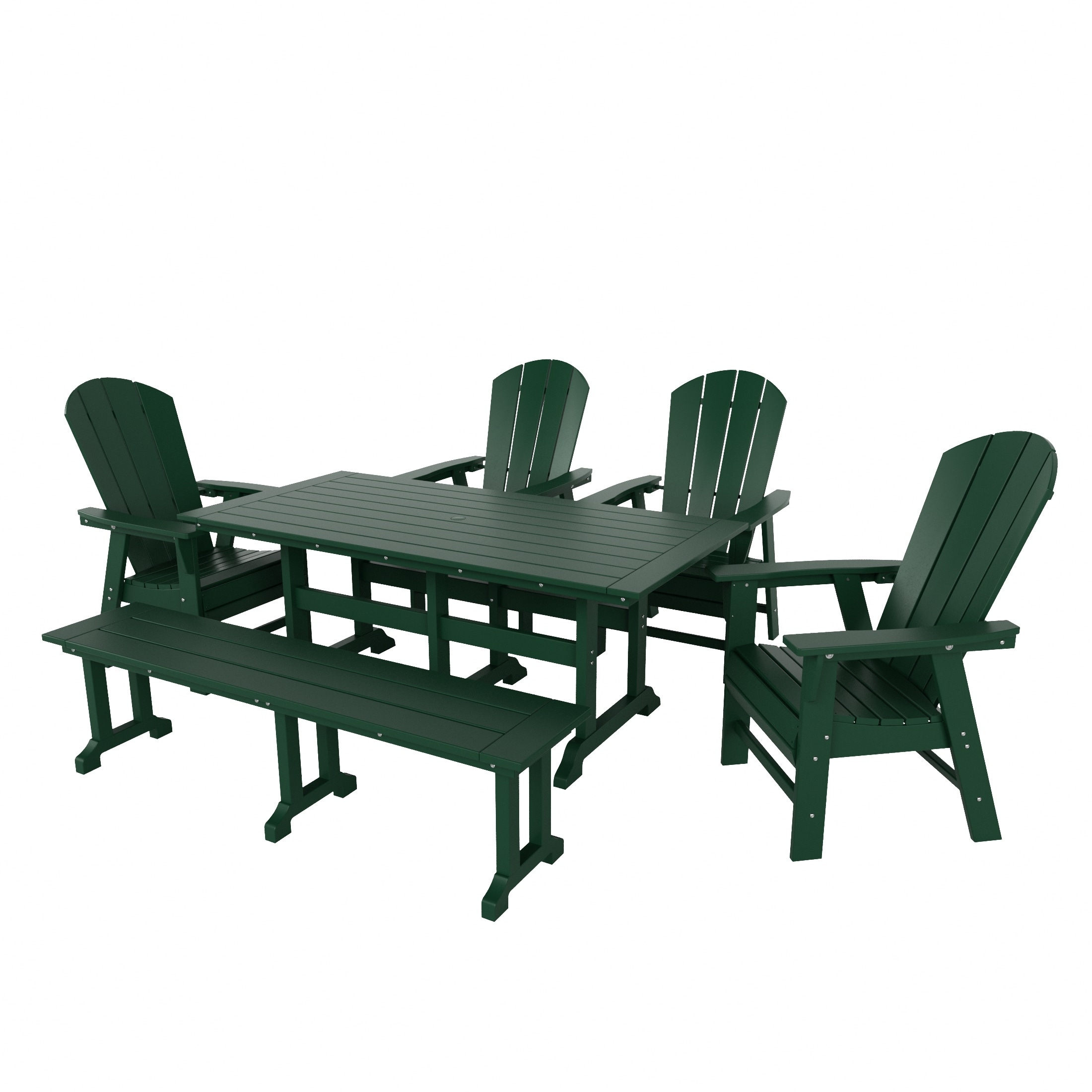 Laguna Hdpe All Weather Outdoor Patio Dining Set with Rectangle Table, Arm Chairs, and Bench (6-Piece Set)