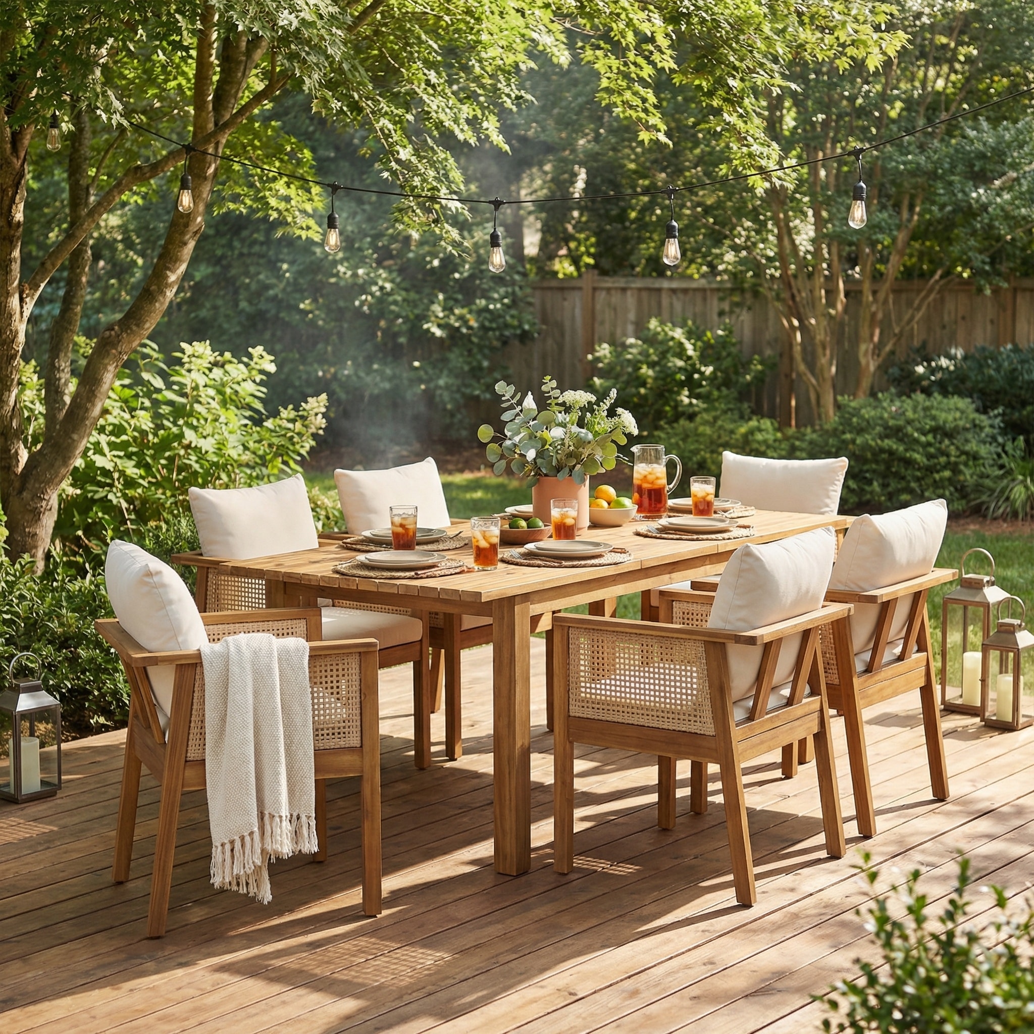 Christopher Knight Home - 7-Piece Outdoor Acacia Wood Dining Set with Wicker Chairs, Expandable Table & Washable Cushions