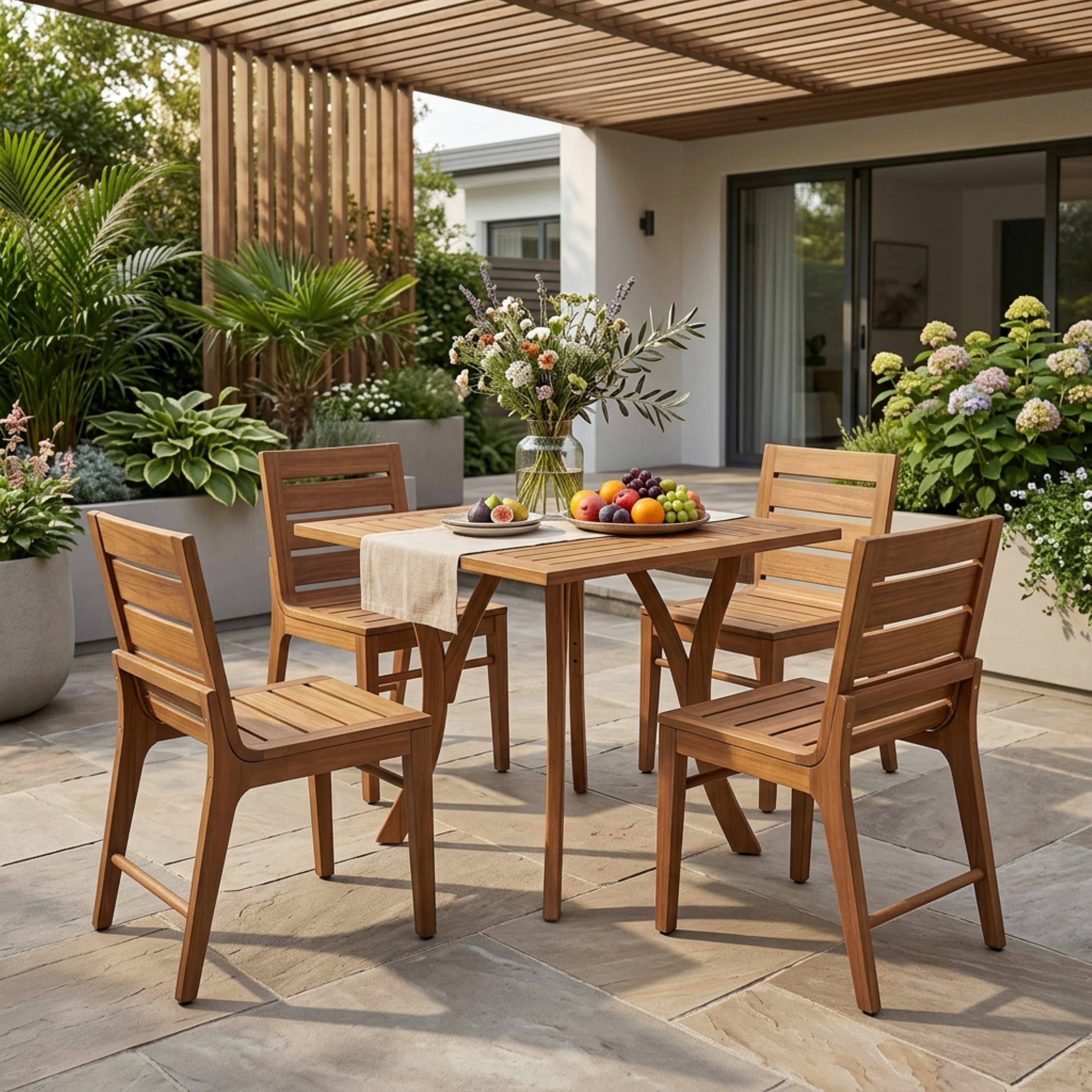 Christopher Knight Home - Modern 5-Piece Acacia Wood Square Outdoor Dining Set with Slatted Chairs in Teak Finish