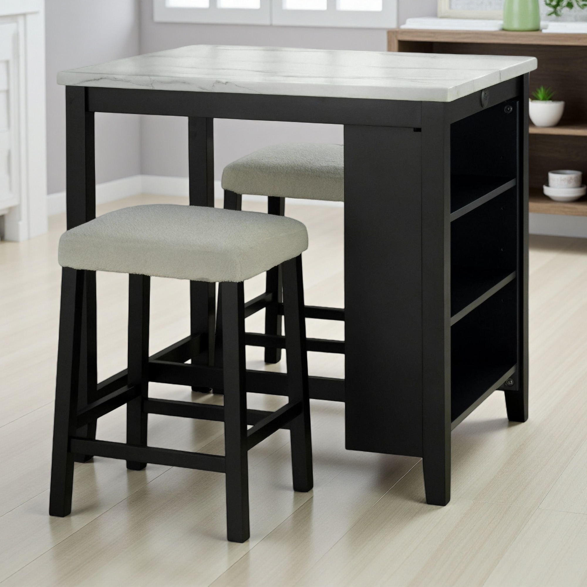 Two-Tone Design Dining Table 2x Stools Biscuit-Tufted Seat Cushion 3pc Dining Table Set