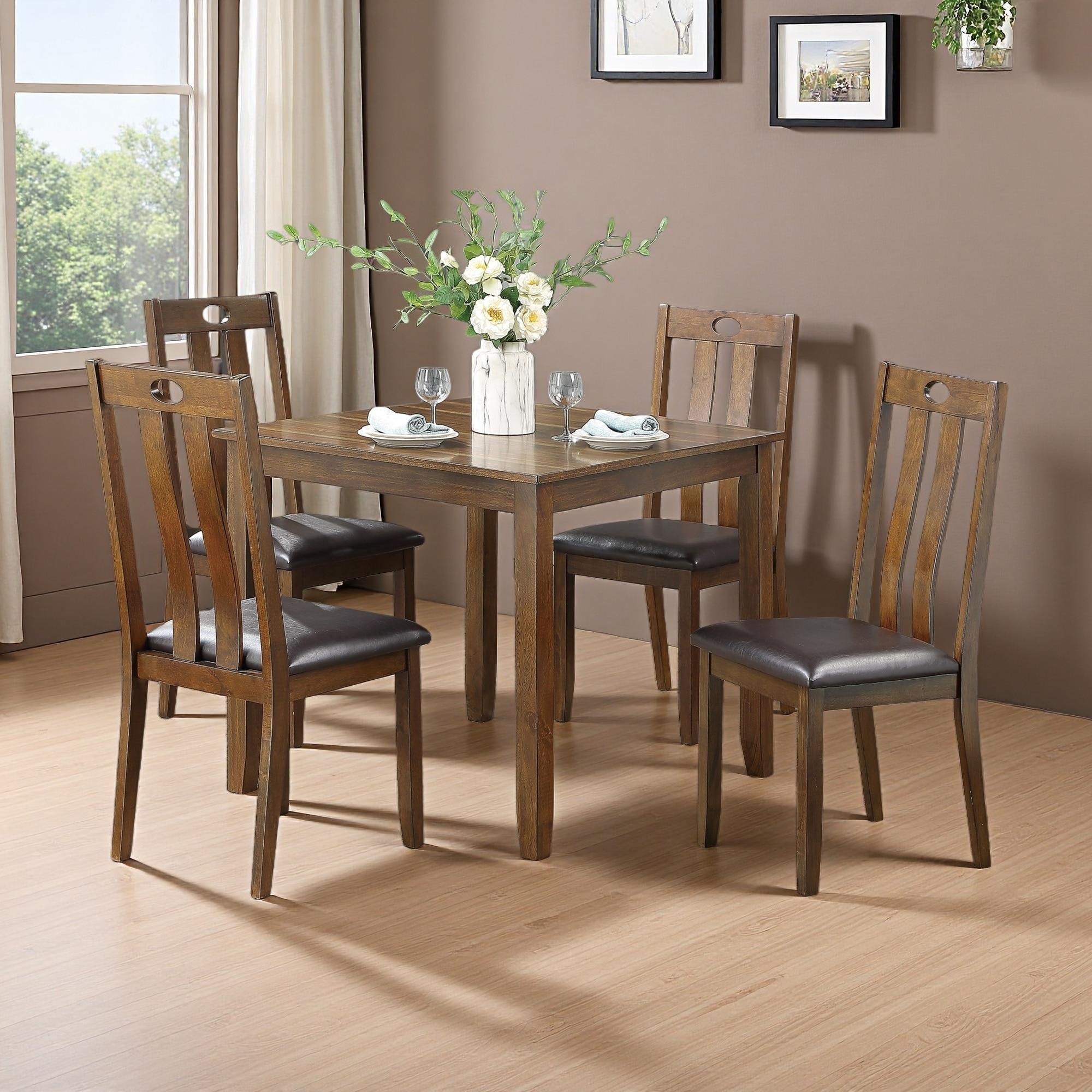 Set of 5 Square 36" Dining Table with 4 Upholstered Side Chairs - Faux Leather Seats, Wooden Transitional Dining Set