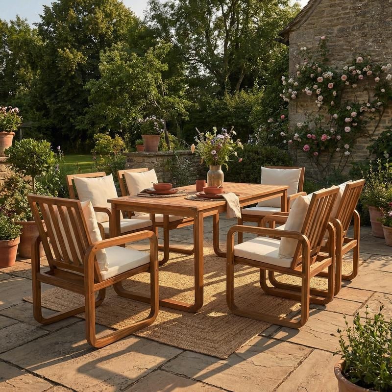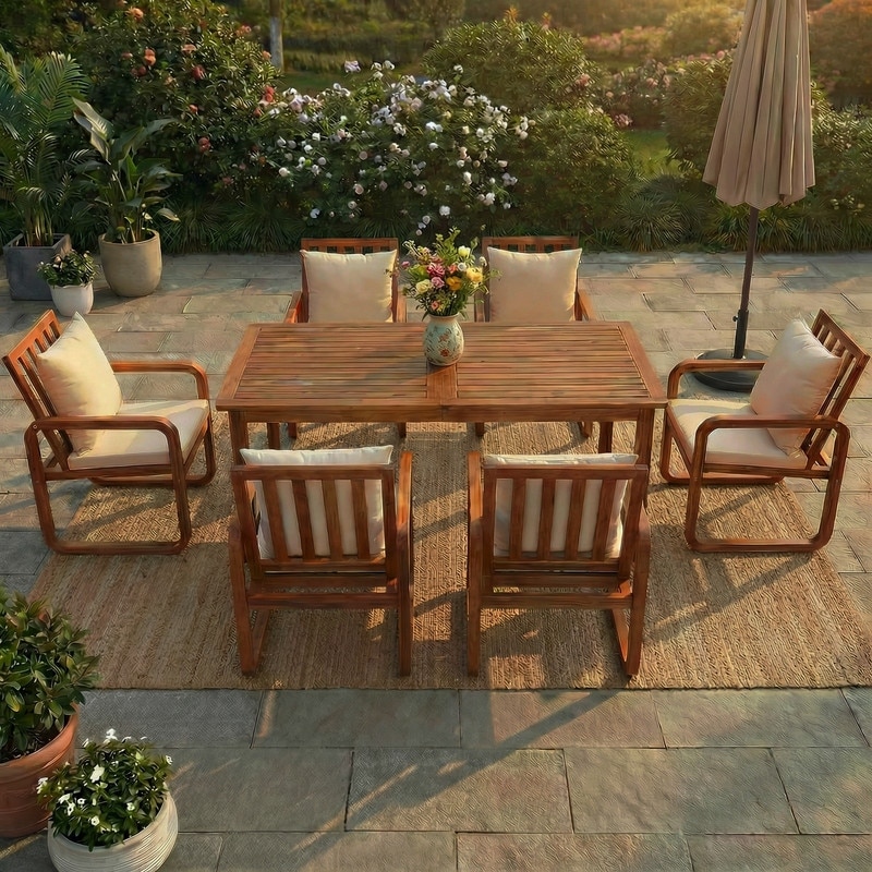 7 Pieces Acacia Wood Patio Dining Set with Removable Cushions for Outdoor Gatherings