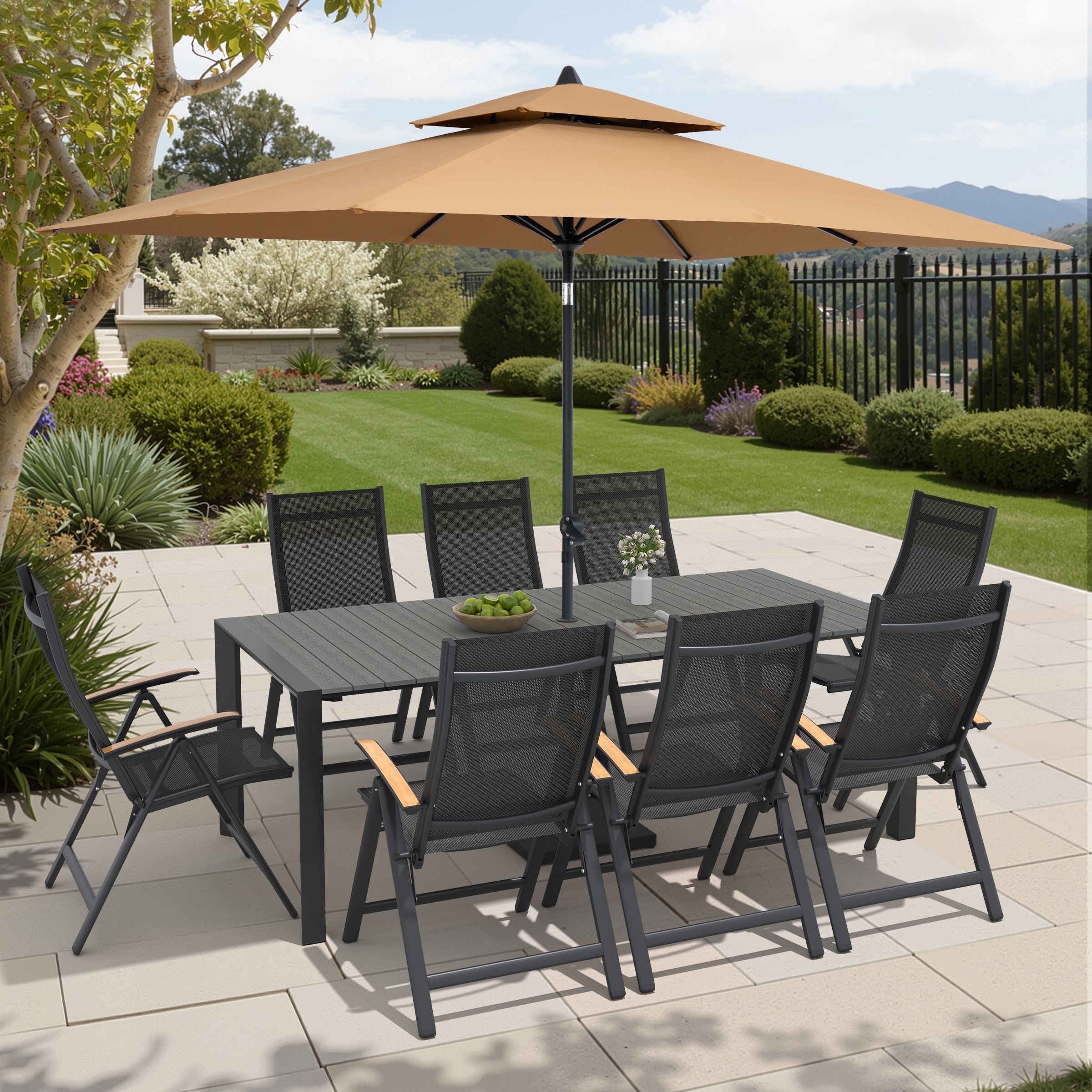 9/11-Piece Outdoor Patio Dining Set Aluminum Dining Table and Chairs w/10 ft Market Umbrella and Base