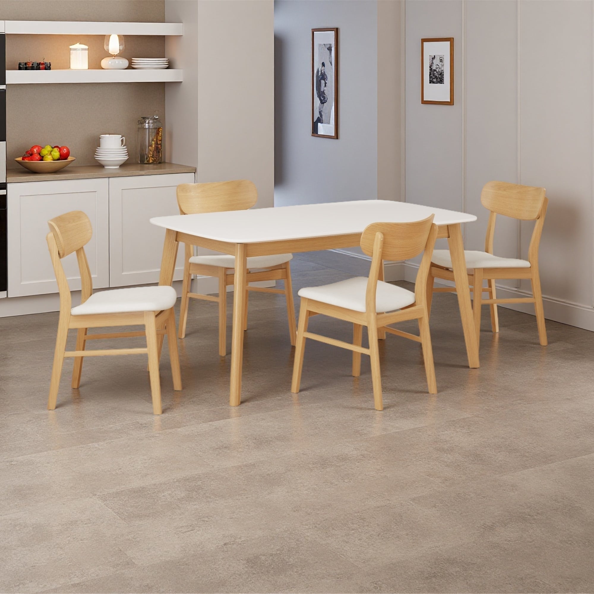 Rustic Kitchen Table Set 7Pc Rectangle Dining Table w/ Chairs Linen White Legs