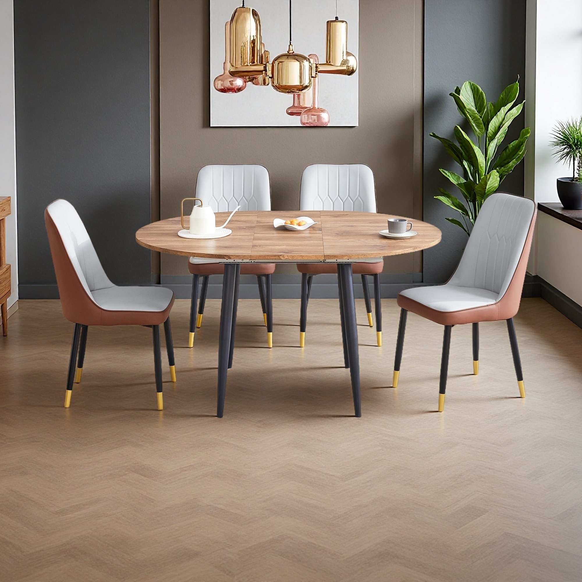Table and Chair Set, Modern Extendable Wood MDF Dining Set with 4 PU Chairs