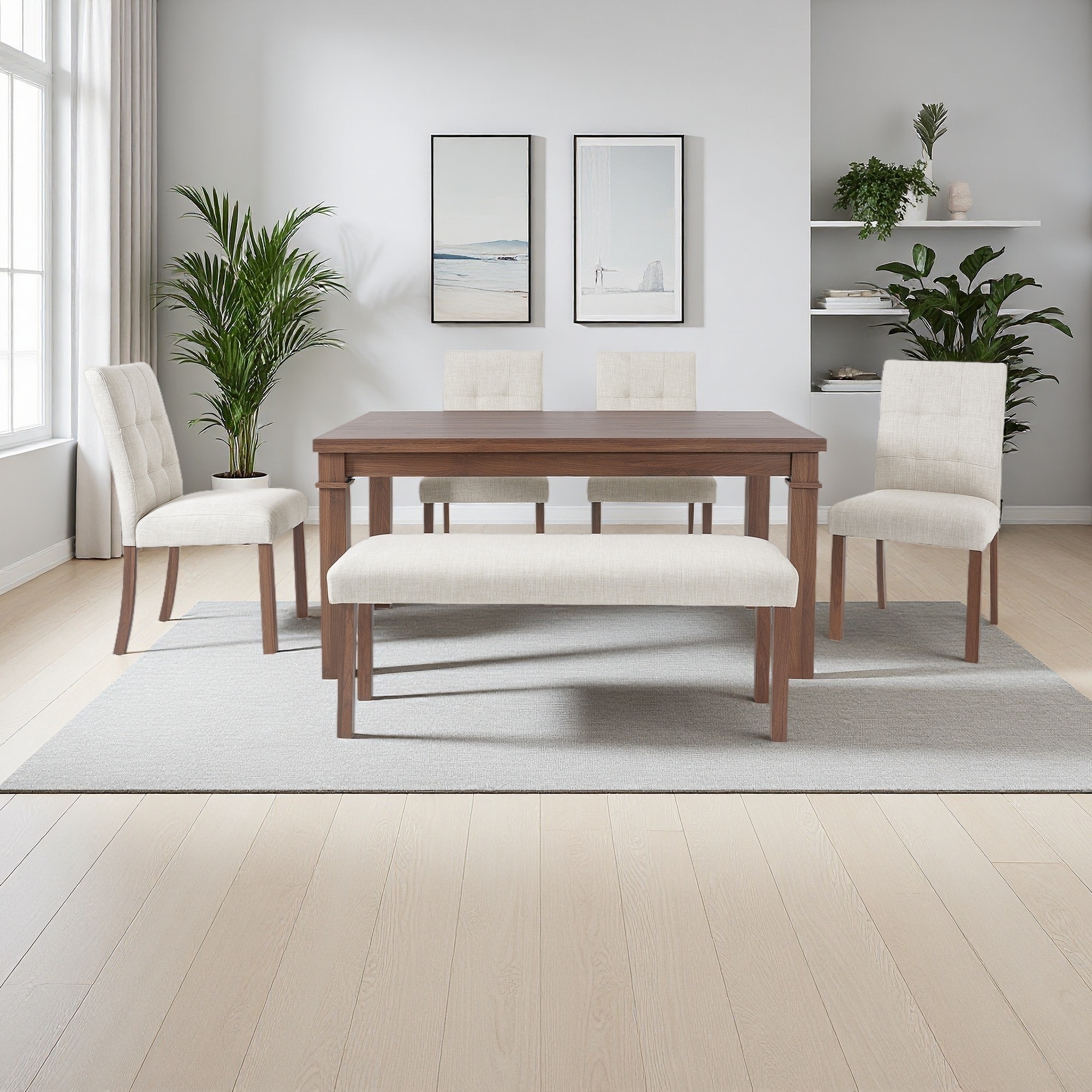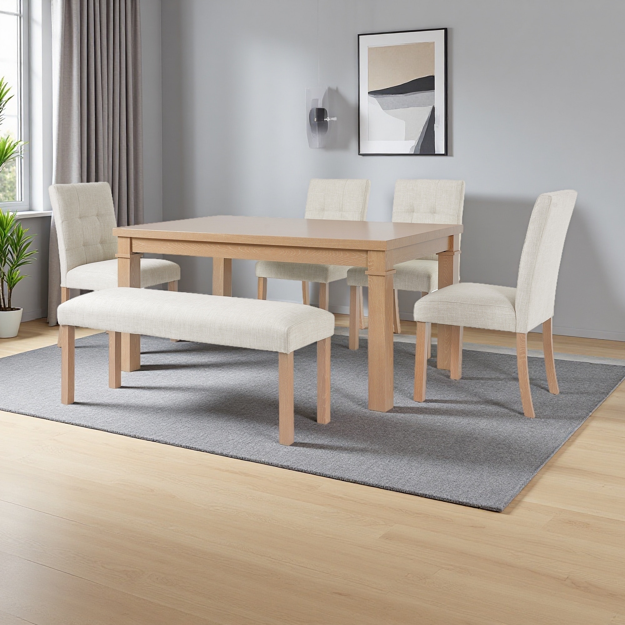 6-Piece Modern Dining Set, Rectangular Table with 4 Chairs & Bench