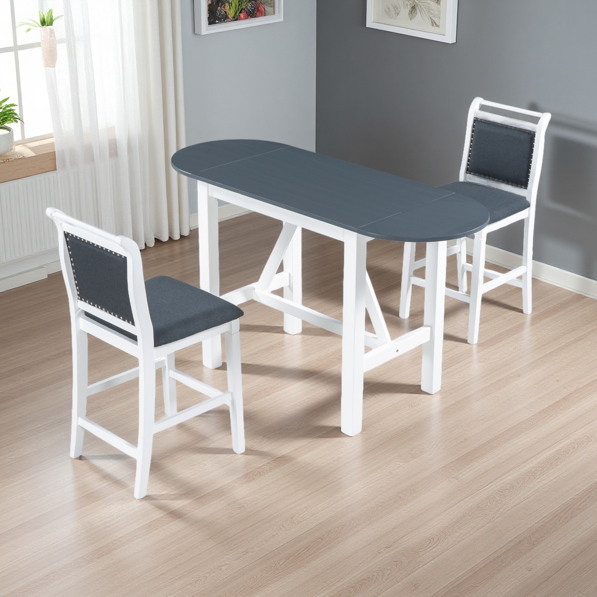 3-Piece Wood Counter Height Dining Set, Drop Leaf Table with 2 Upholstered Chairs
