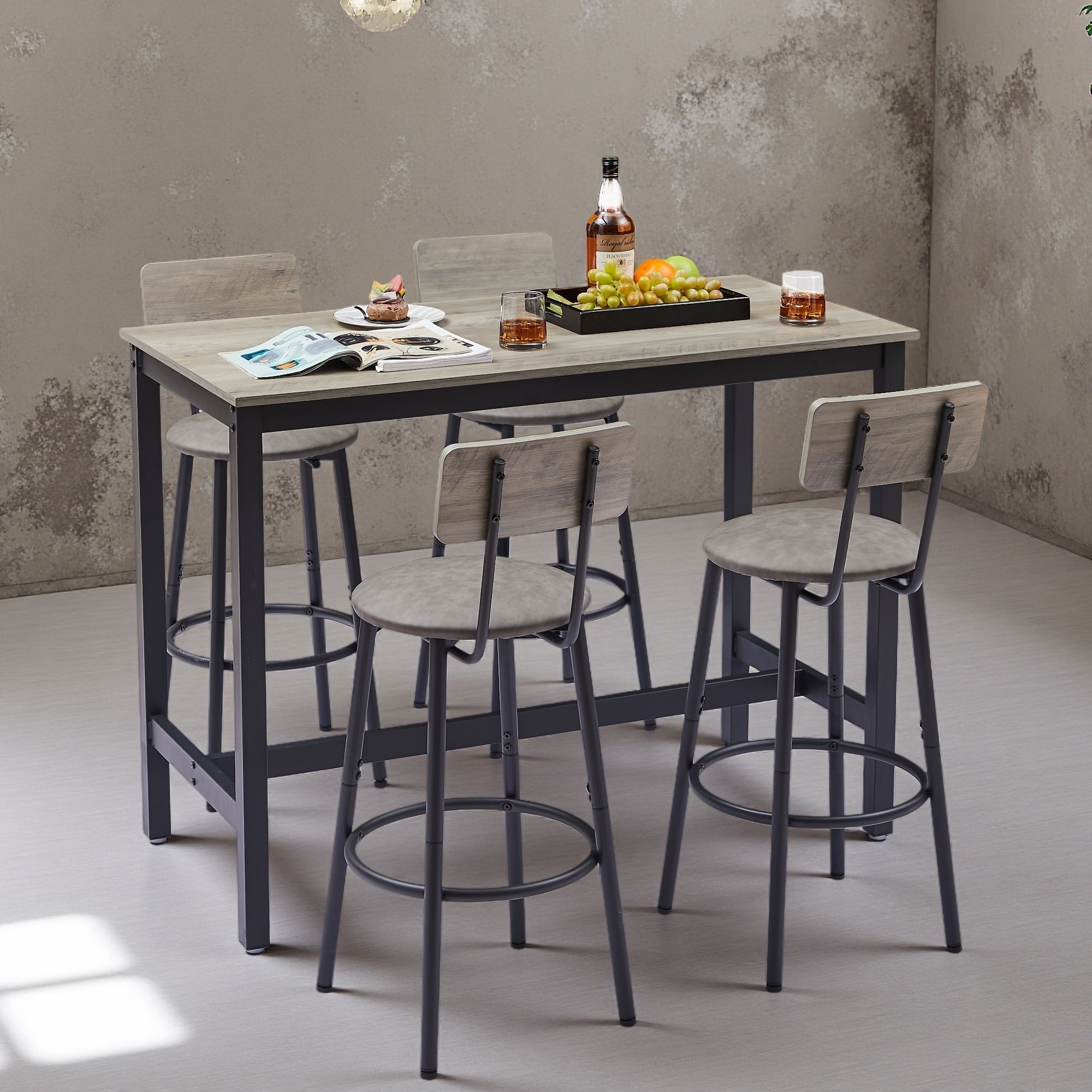 Bar Table Set with 4 PU Stools, Grey, 47.24" L x 35.43" H