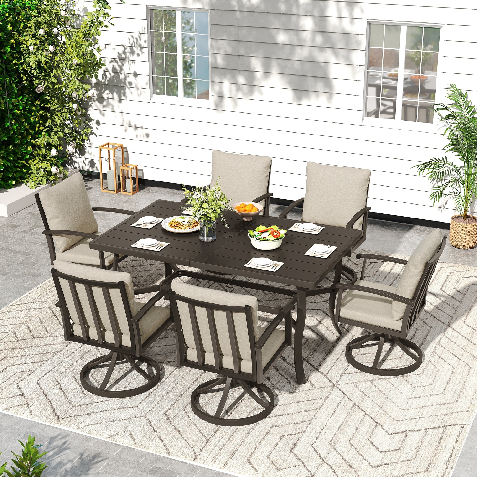 EGEIROS LIFE AluLux 7-Piece Aluminum Patio Dining Set with 6 Swivel Dining Chairs and Washable Cushions