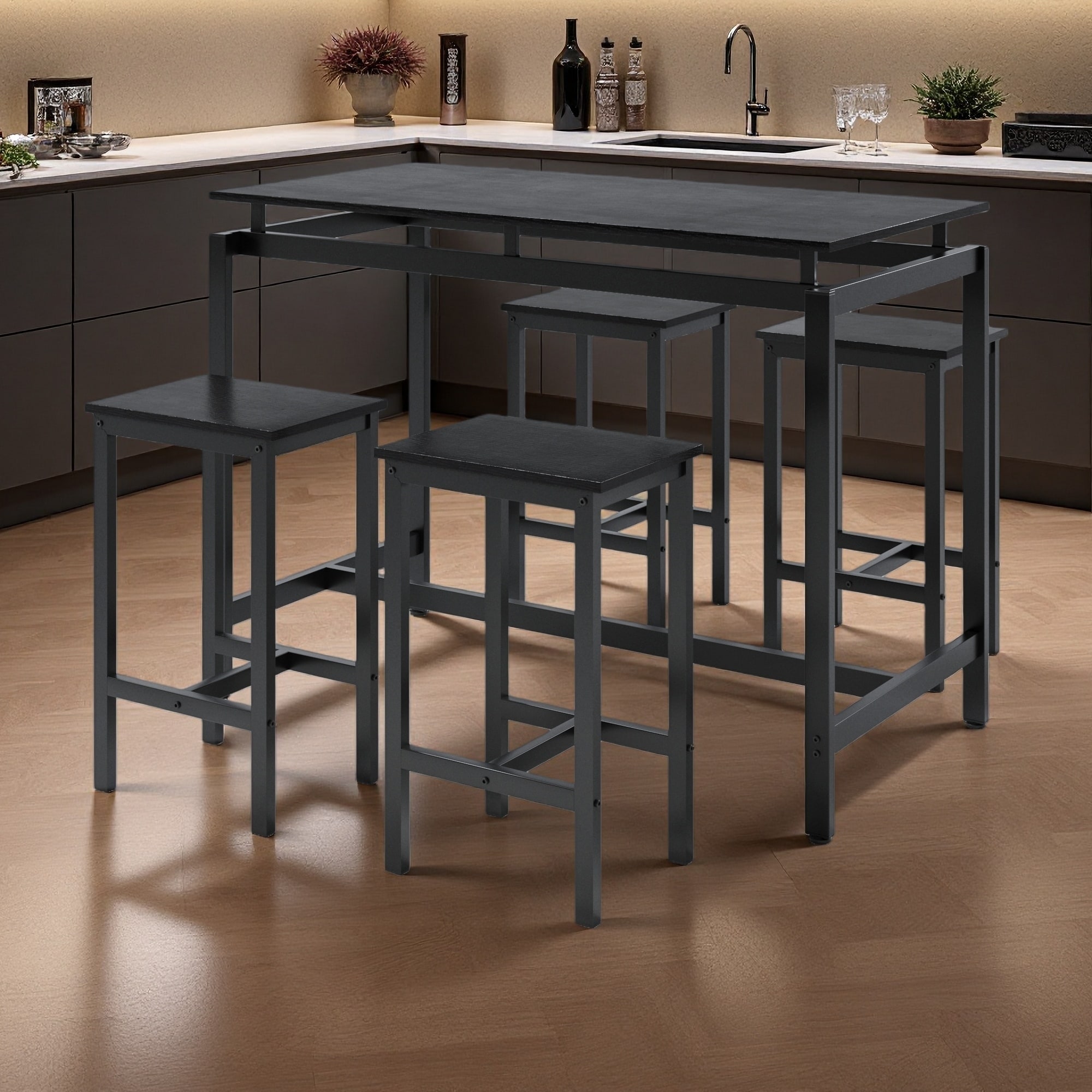 Set of 5 Dining Table Set Bar Table with 4 Stools, Counter Height Pub Table, Space-Saving Set for Kitchen, Small Spaces