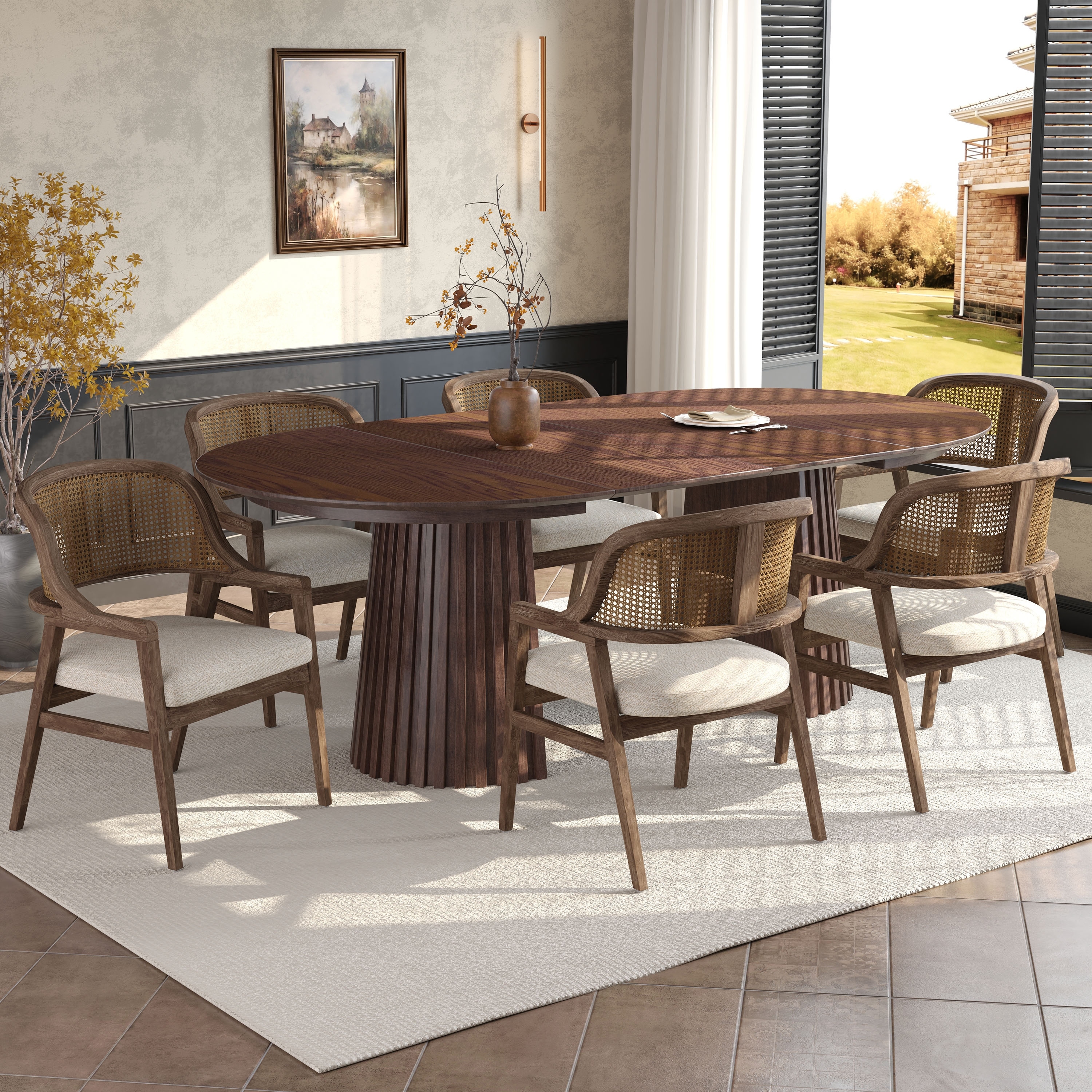 Christopher Knight Home - Mid-Century Extendable Dining Table Set with Upholstered Cane Back Dining Chairs