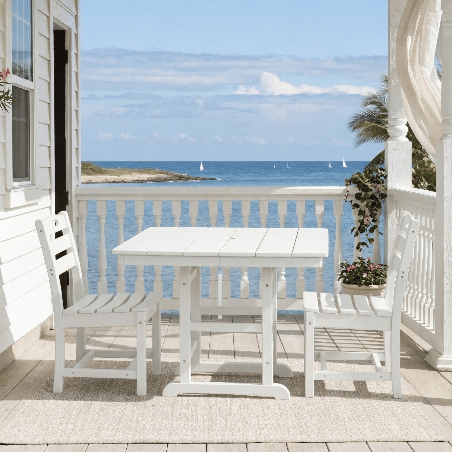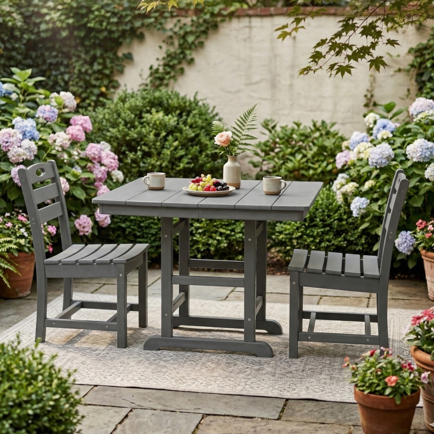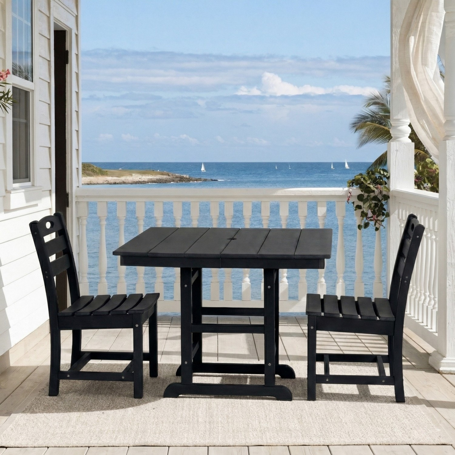 3-Piece Patio Dining Set, 37.8" HDPE Square Table with 2 Chairs