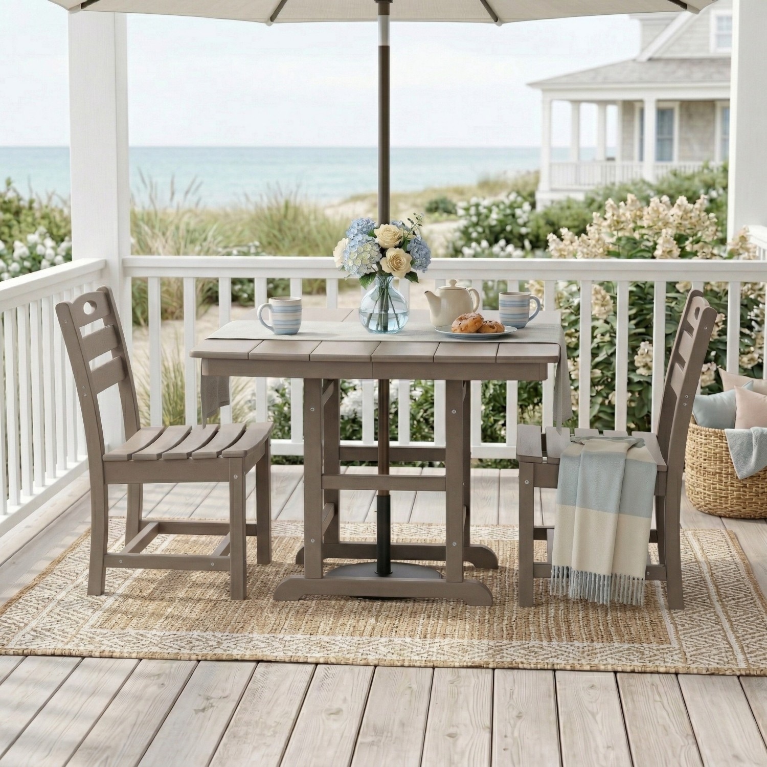 Wood Outdoor Dining Table And Chairs Suitable For Patio, Balcony Or Backyard