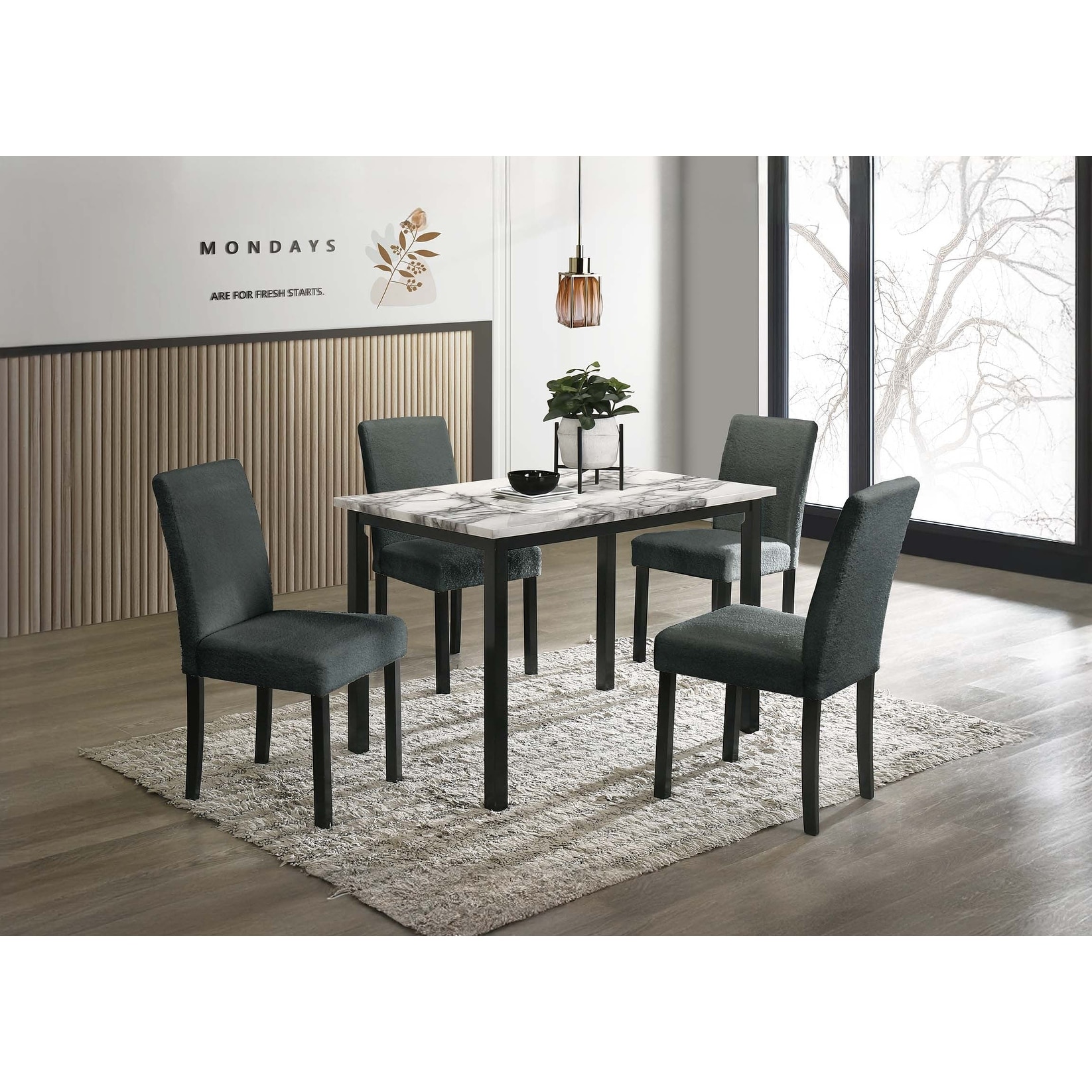 Contemporary Style 5pc Dining Room Set Faux Marble Table Top Charcoal Finish
