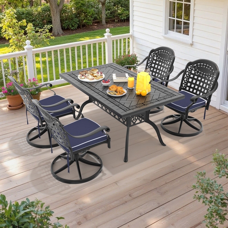5-Piece Aluminum Rectangular Outdoor Patio Dining Set, 4 Cushioned Swivel Chairs, Table, All-Weather Frames