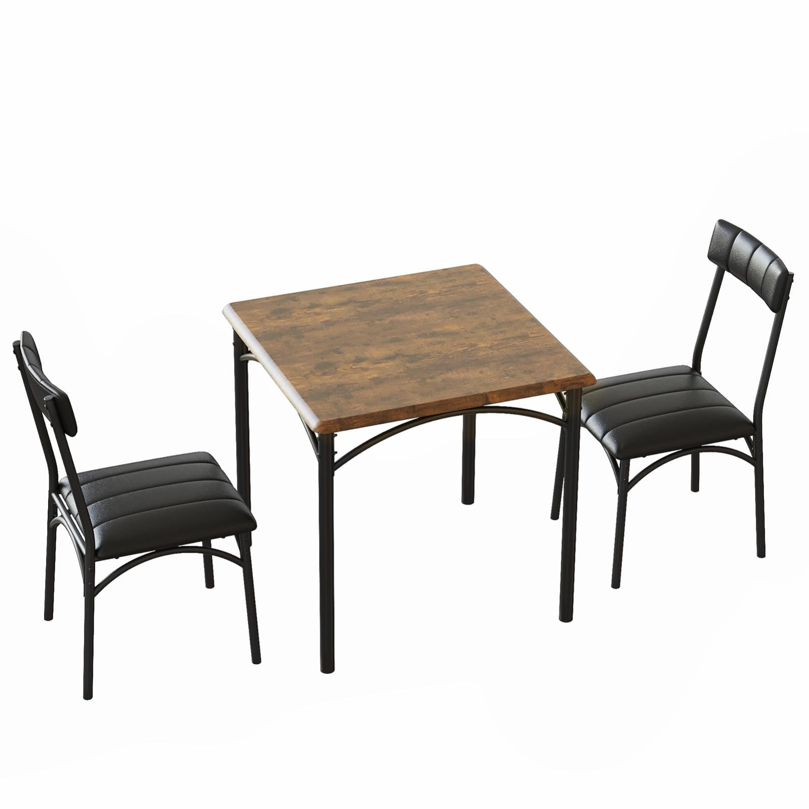 3 Pcs Dining Table Chair Set , Compact Kitchen Table with 2 Upholstered Chairs - 29.2x29.2x30in