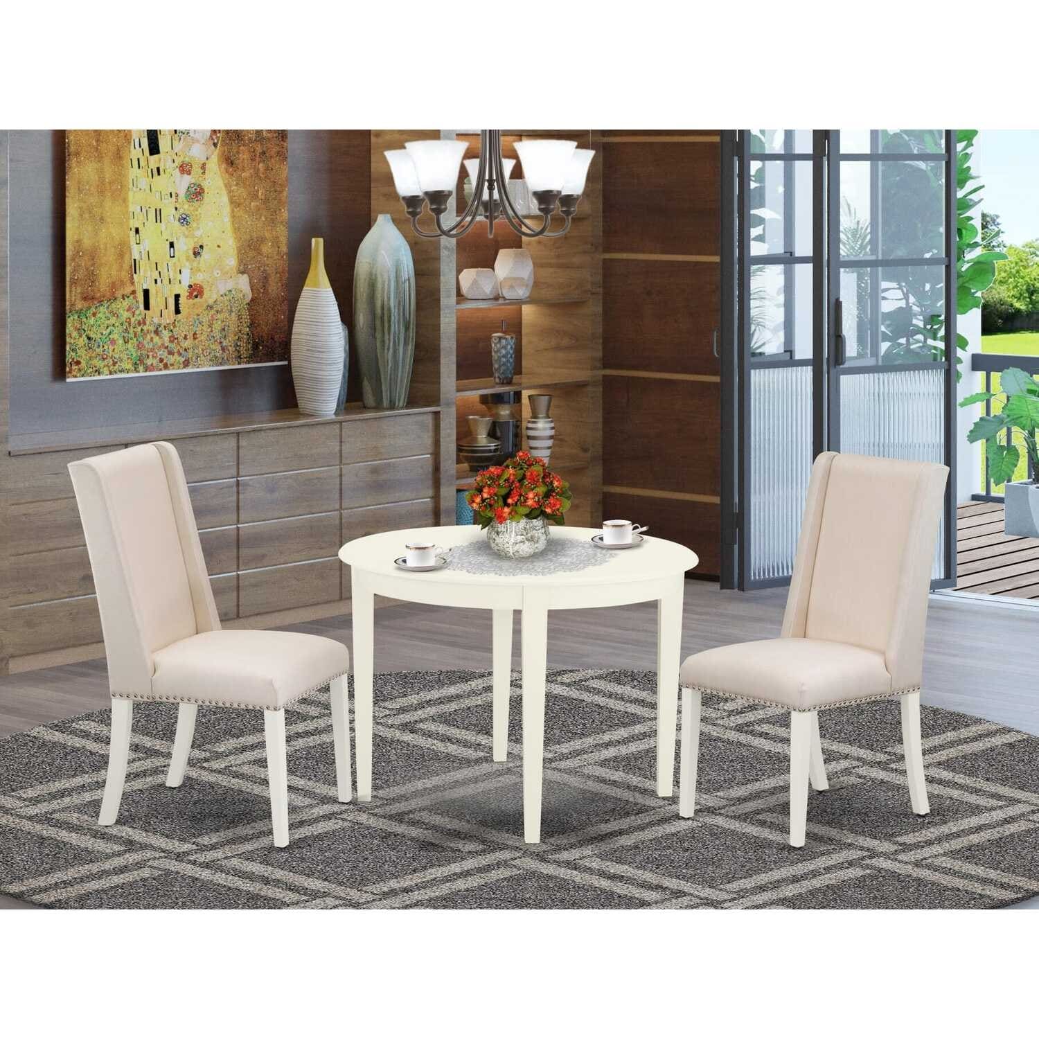 Round Pedestal Dining Table Set with 2 Chairs - Linen White Modern Kitchen Table