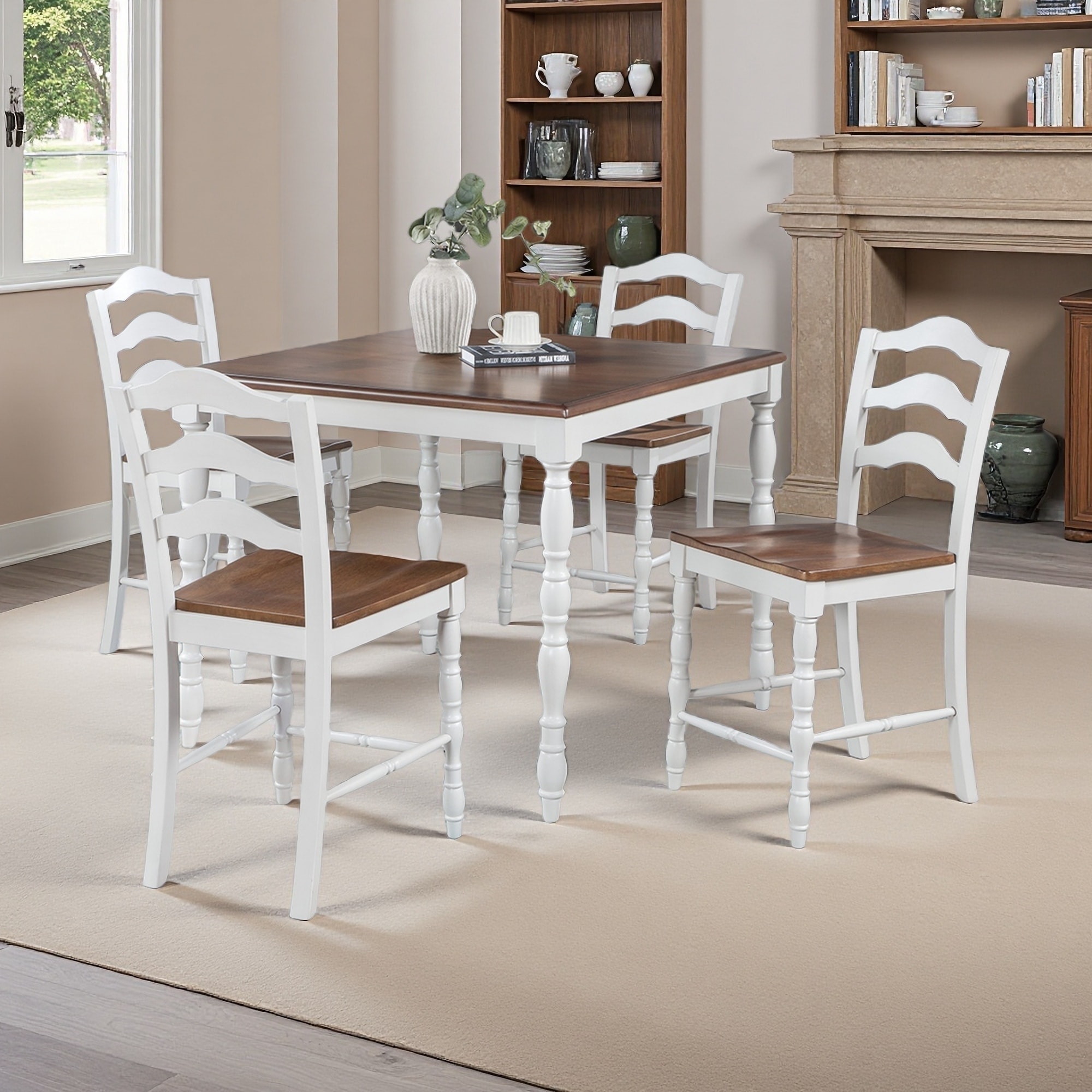Set of 5 Counter Height 42"L Dining Table, Natural Wood Grain Look, 4x High Chairs with Ladder Back Design, Modern Dining Set
