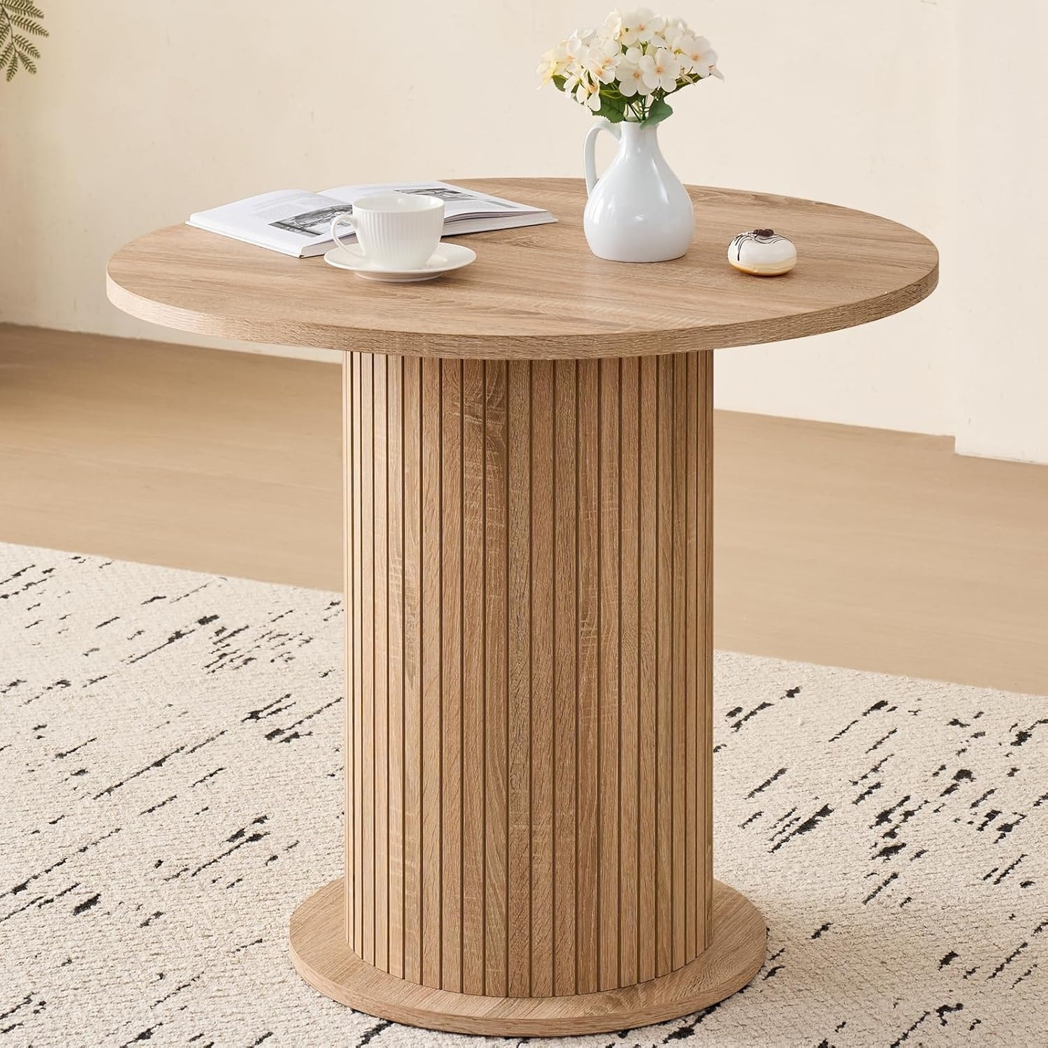 35.5 Inch Round Dining Table, Modern Space-Saving Pedestal Table for Small Spaces, Apartment Living Room - Mini Natural 35.5