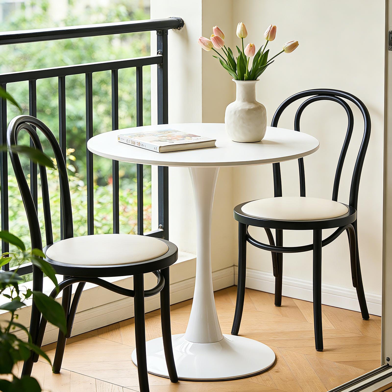 Verve Modern Round Solid Wood Top Dining Table with White Finish Steel Pedestal Base Furniture for Kitchen and Dining Room