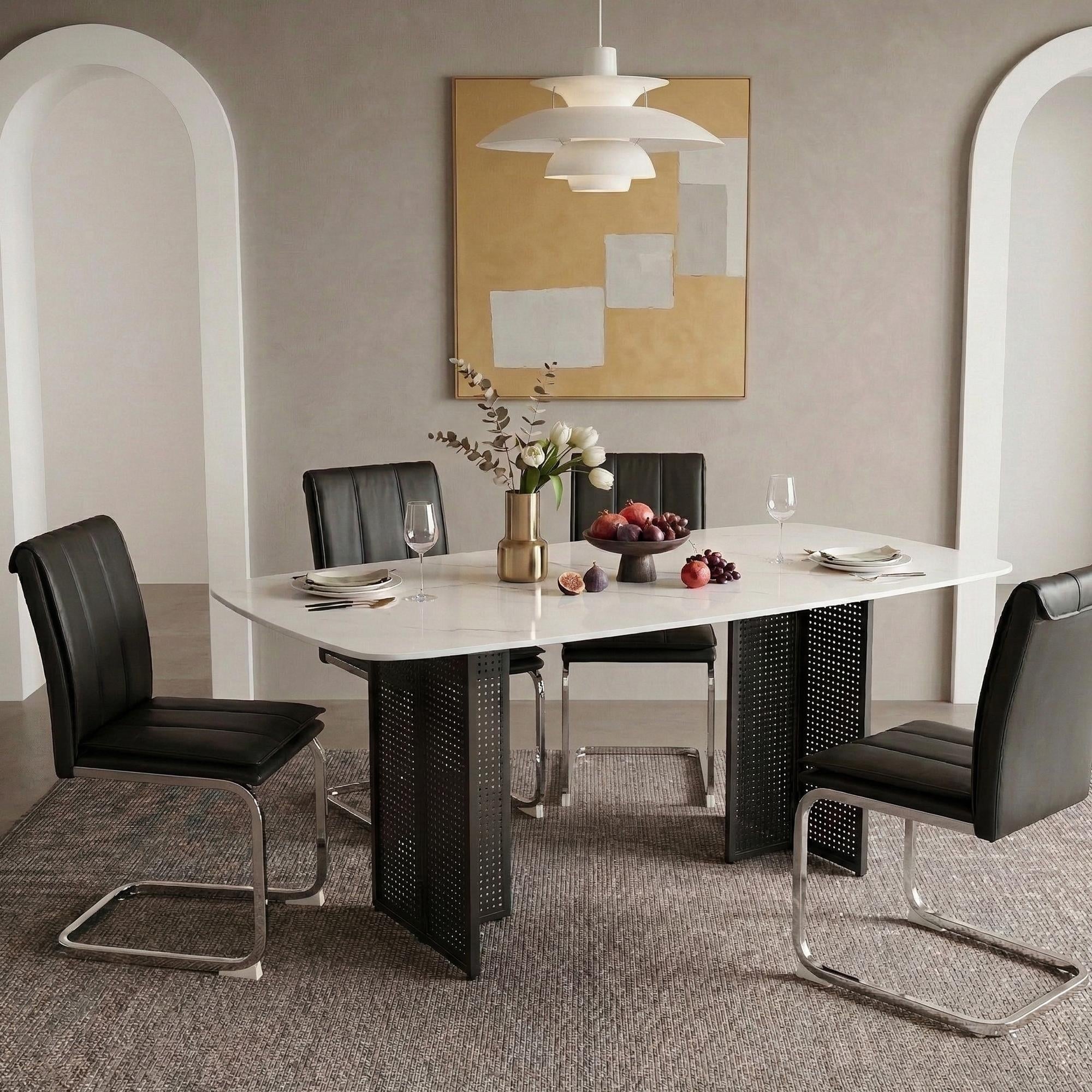 Modern Marble Top Dining Table with Diamond-Shaped Stainless Steel Base